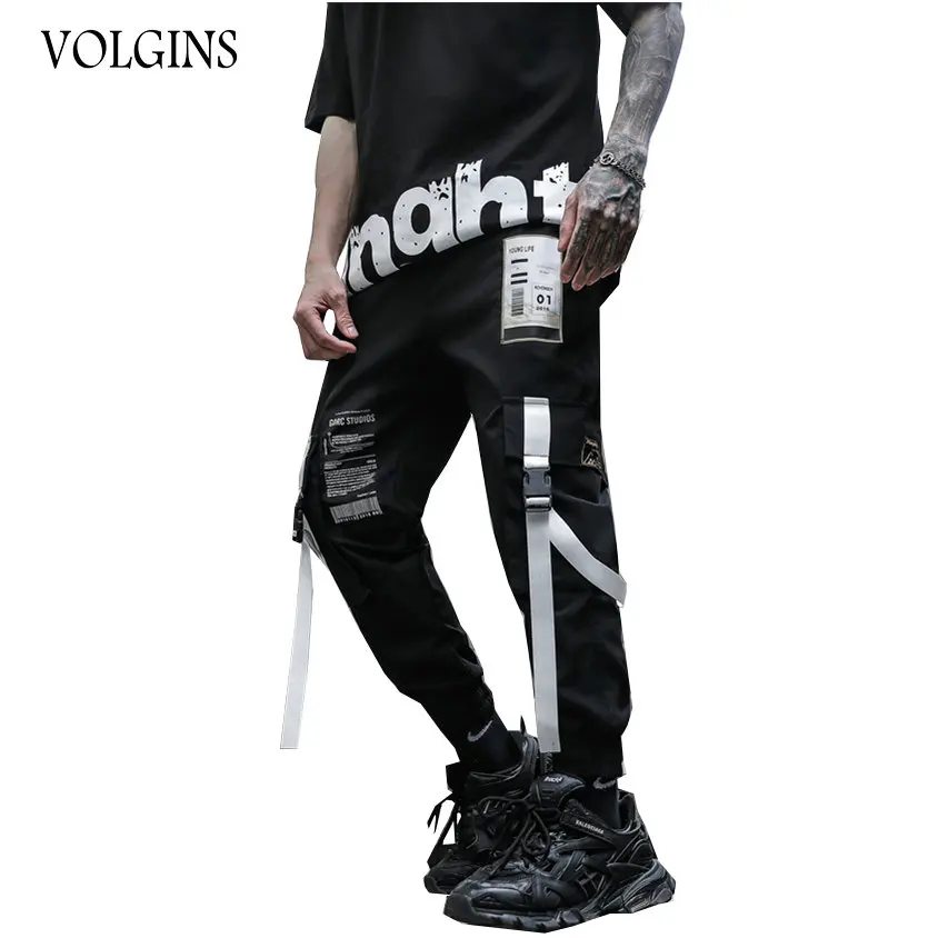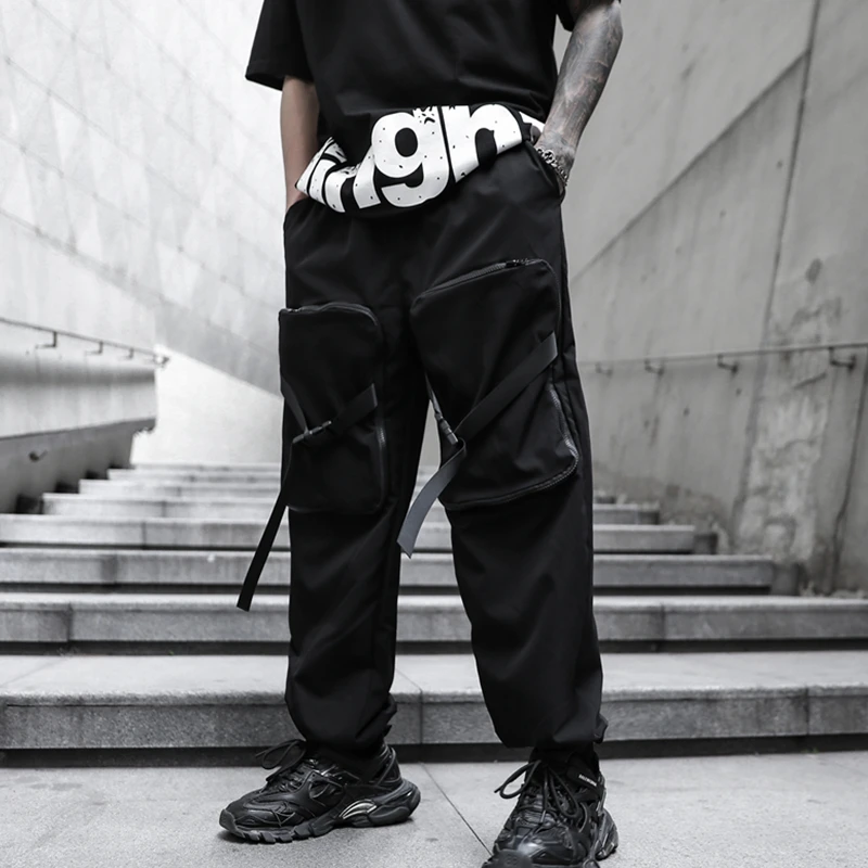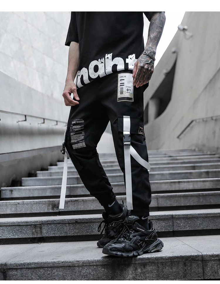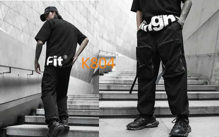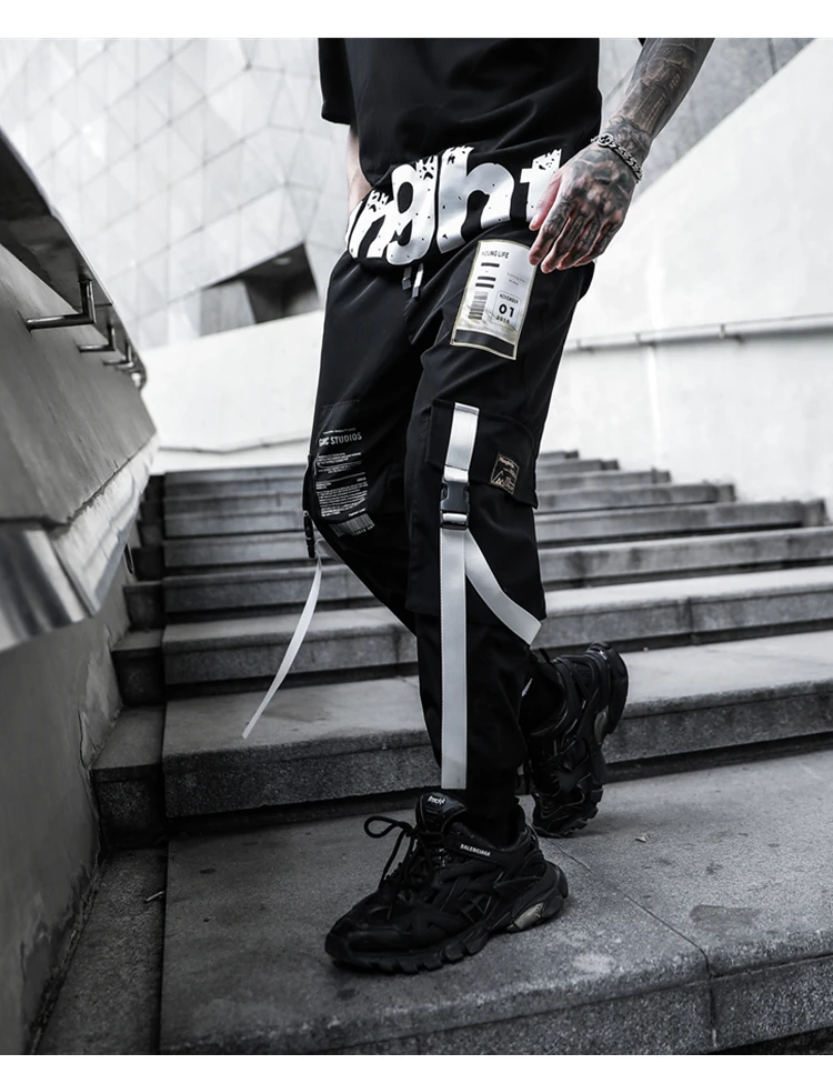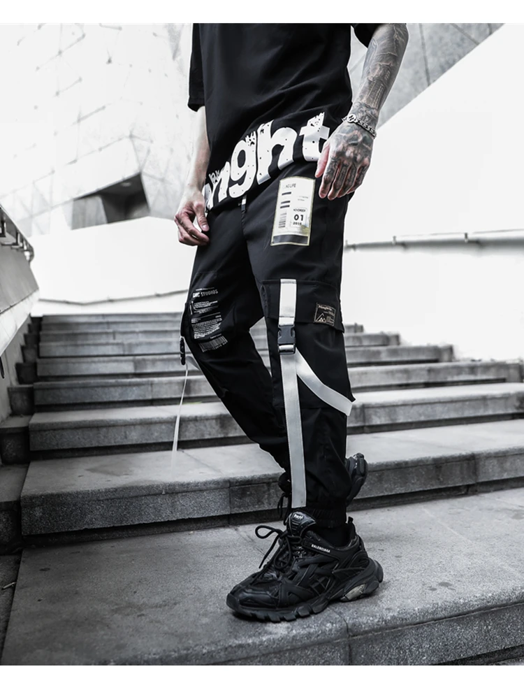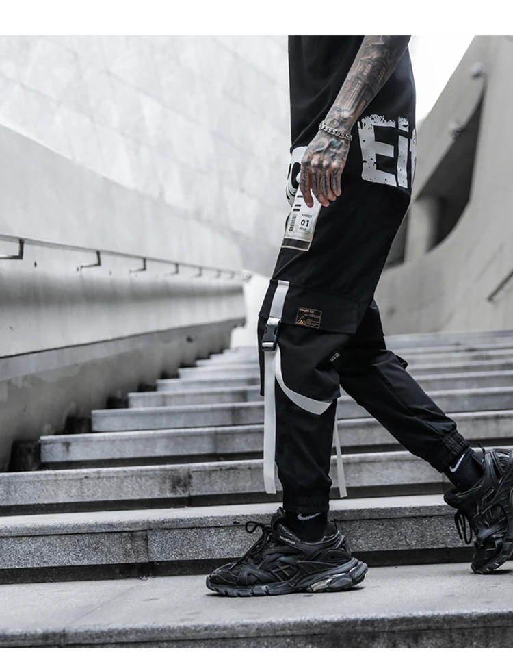 Джоггеры мужские в стиле хип-хоп, уличная одежда, брюки-карго с карманами, тактические повседневные тренировочные штаны с лентами, черные, 2022