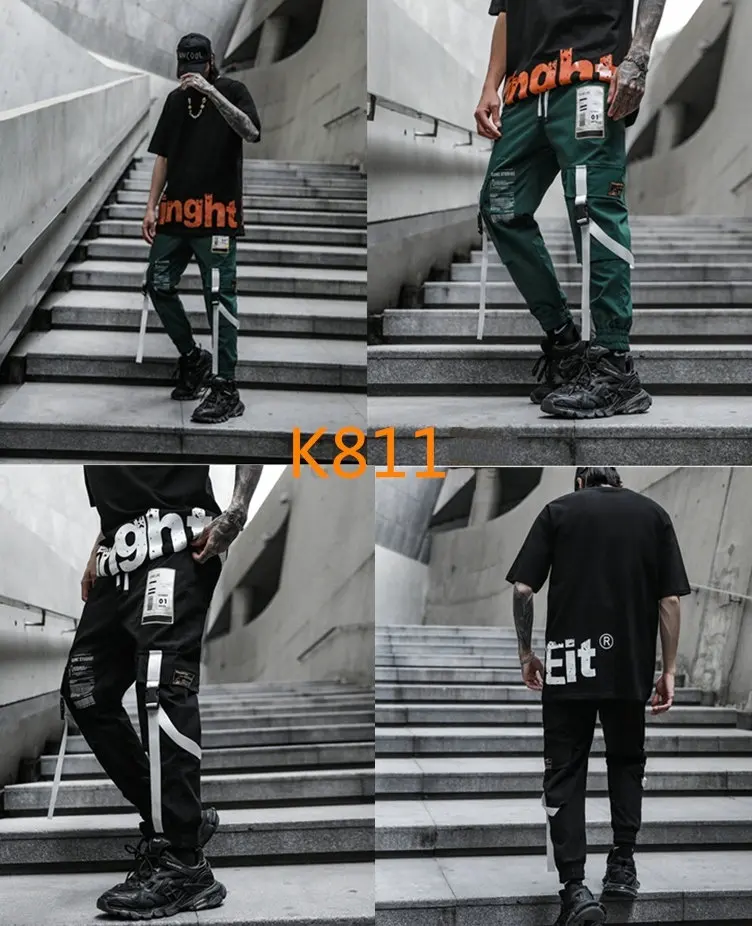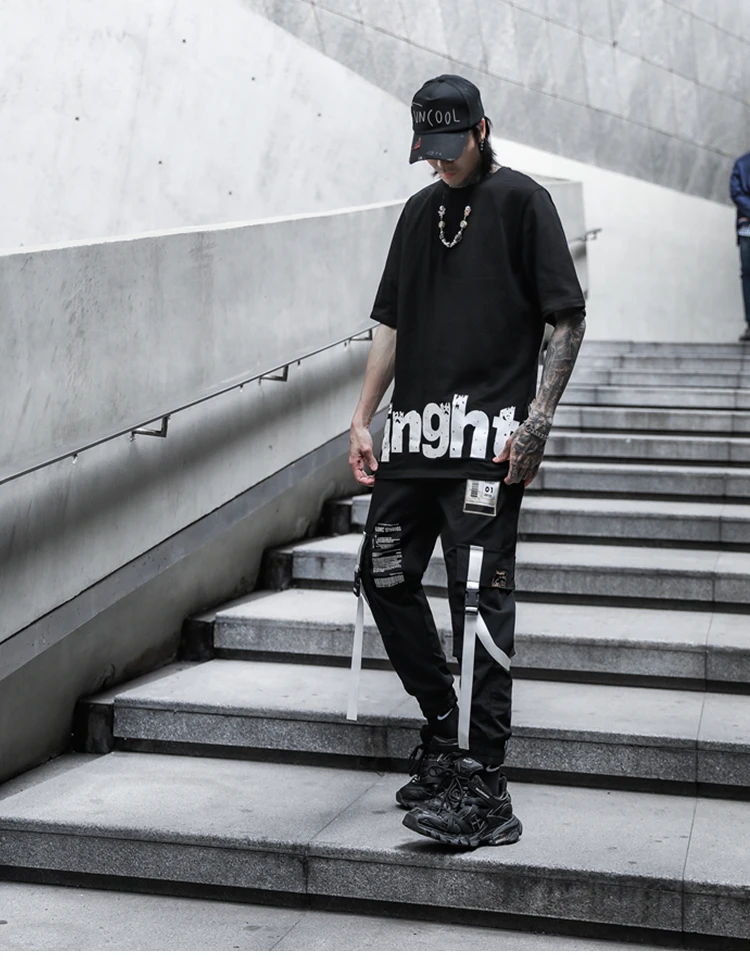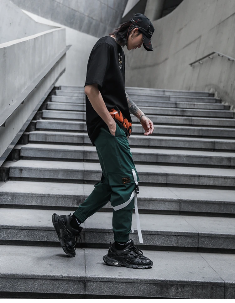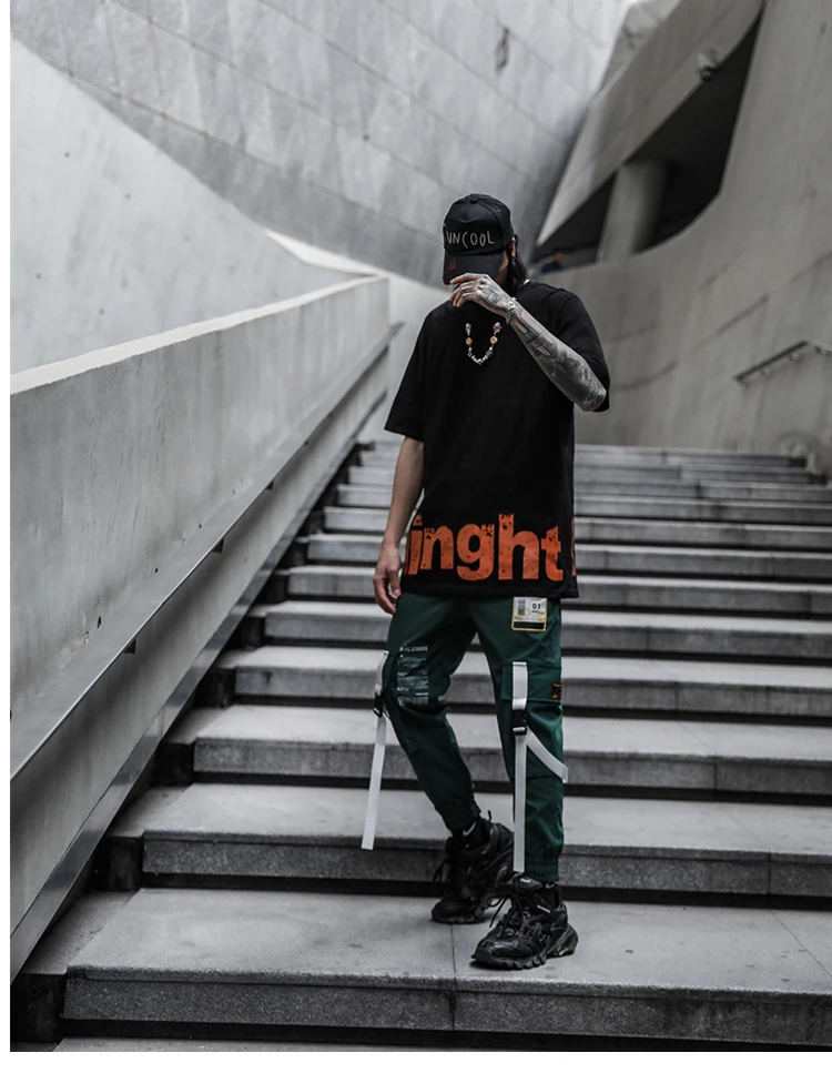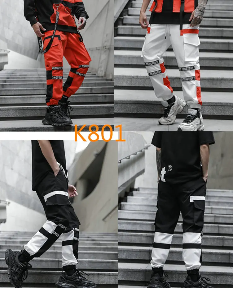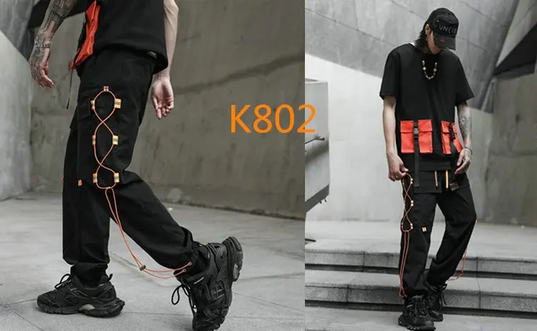 Джоггеры мужские в стиле хип-хоп, уличная одежда, брюки-карго с карманами, тактические повседневные тренировочные штаны с лентами, черные, 2022