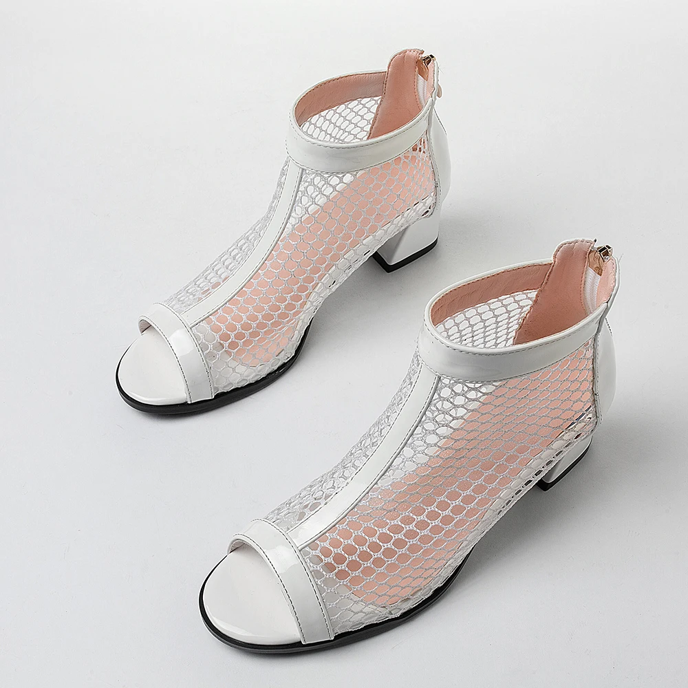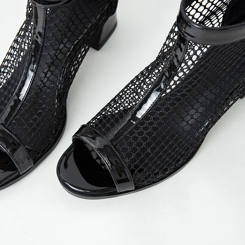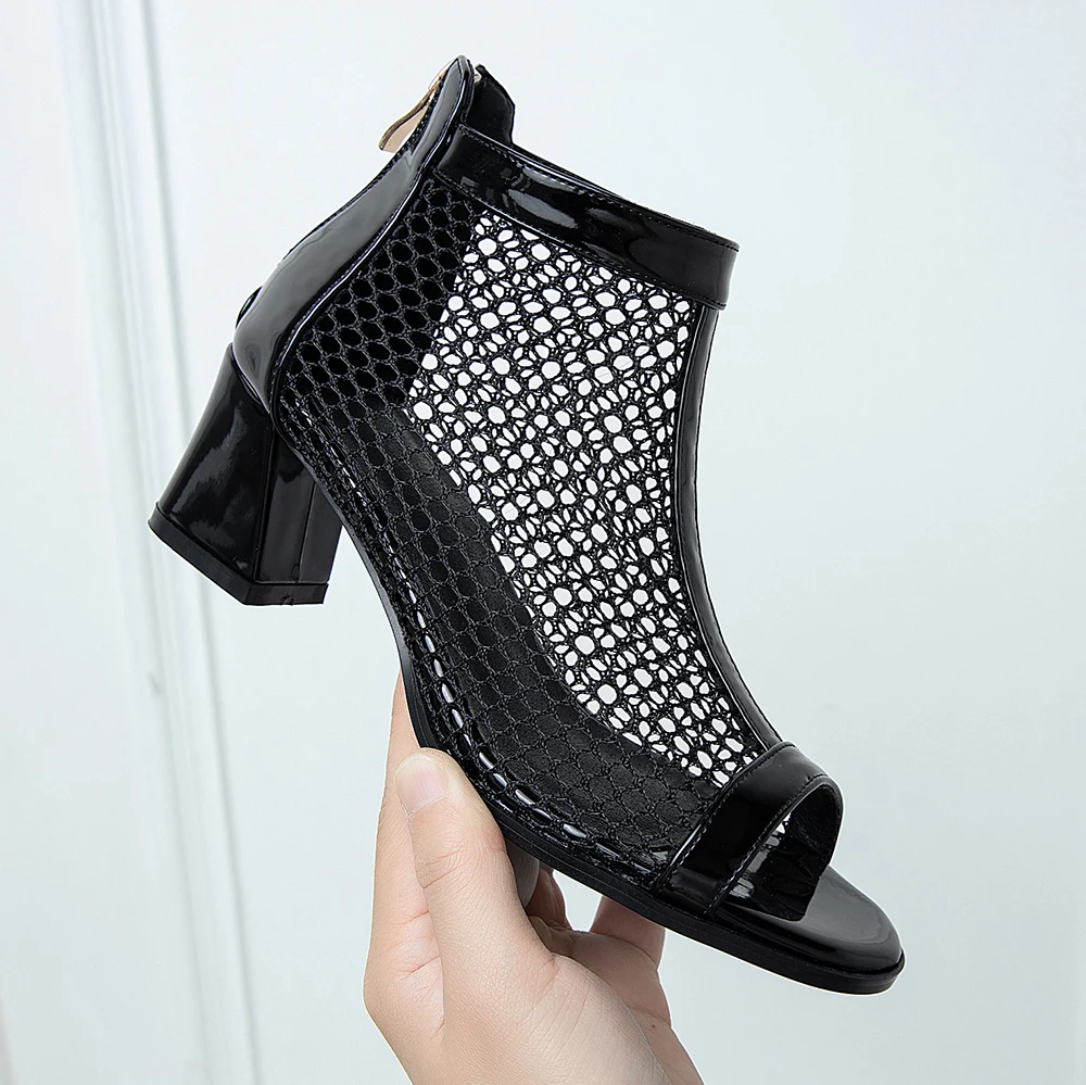 Босоножки женские с открытым носком, высокий каблук 5 см, сетчатые сандалии-лодочки, повседневные черные летние туфли для вечеринок, фетиш, Прямая поставка