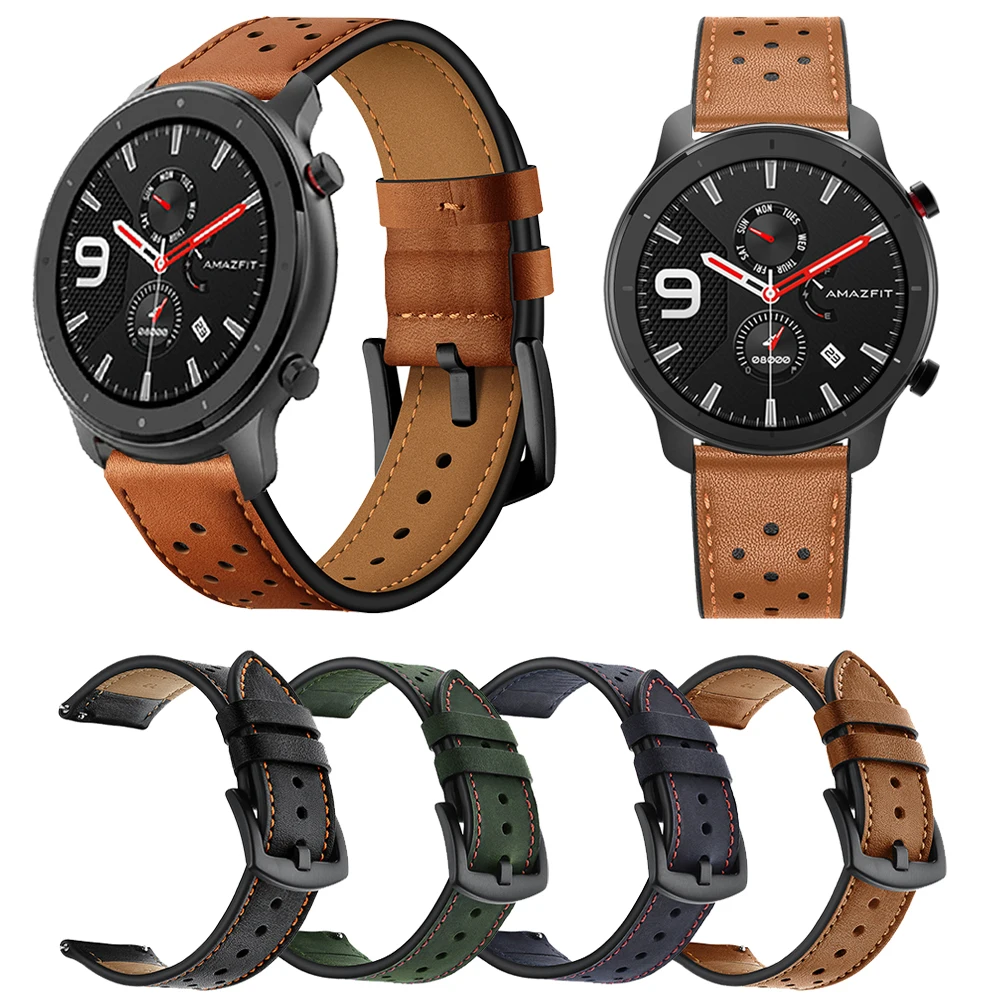 Ремешок из натуральной кожи для Amazfit GTR 42 мм 47 мм, браслет дл...