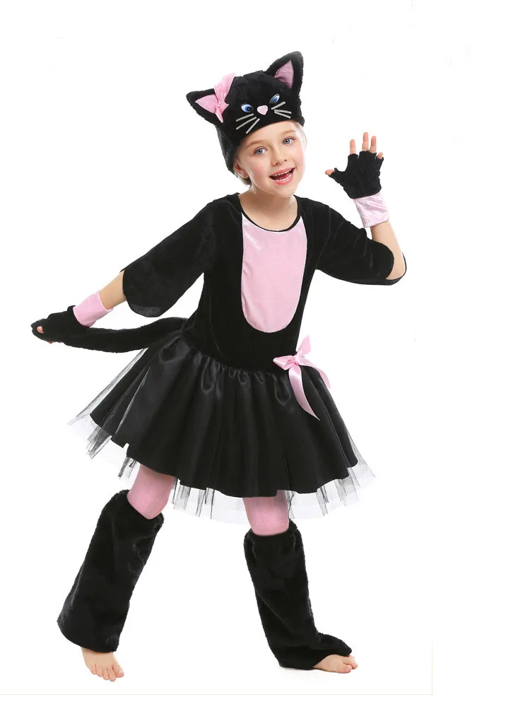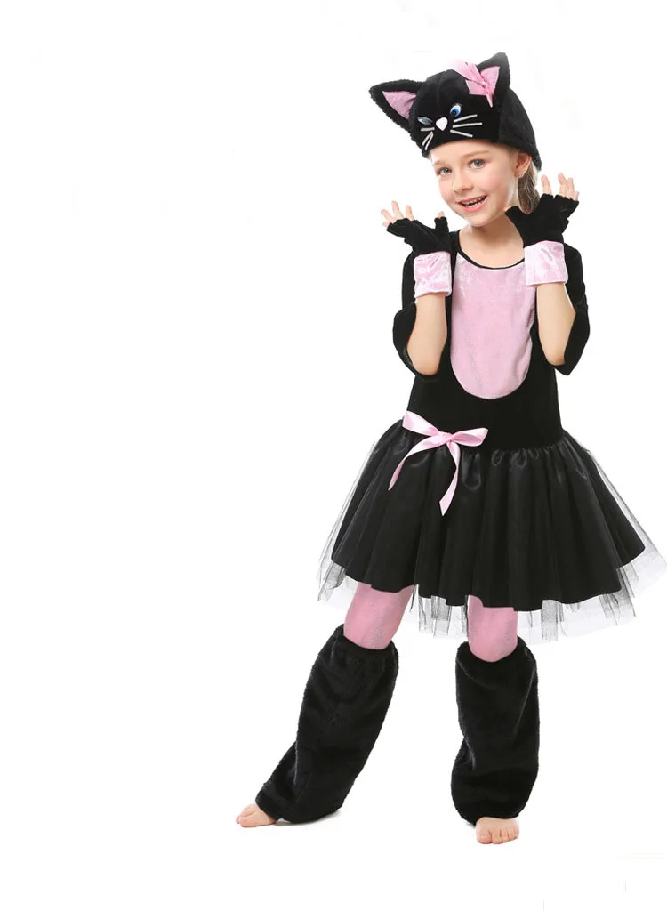 Модное детское нарядное платье, мультипликационный Черный кот, косплей, Детский костюм, перчатки, шляпа, праздничный наряд, девушка, одежда для выступлений