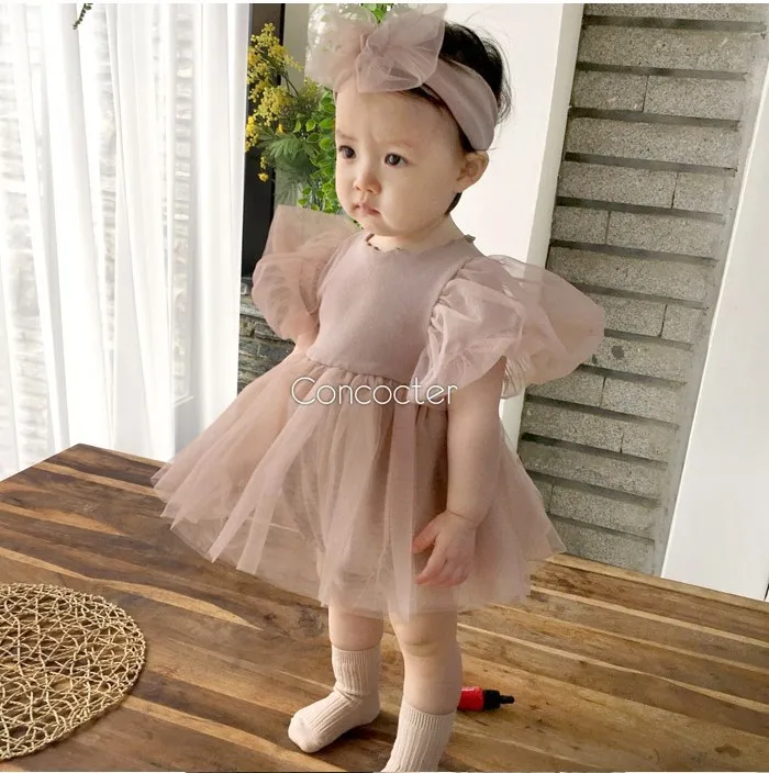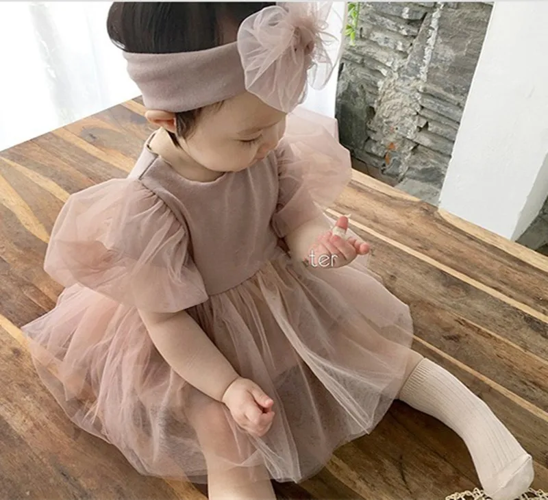 Комбинезон с короткими рукавами для девочек, Пышное Платье с пышными рукавами, 2020 комбинезон для девочек, комбинезон с круглым вырезом