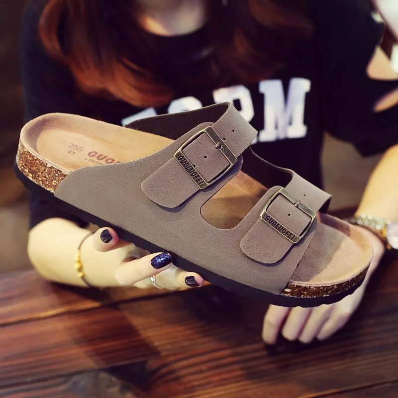 Быстрая доставка, мужские сандалии из искусственной кожи, высококачественные мягкие пробковые шлепанцы с двумя пряжками, мужская обувь