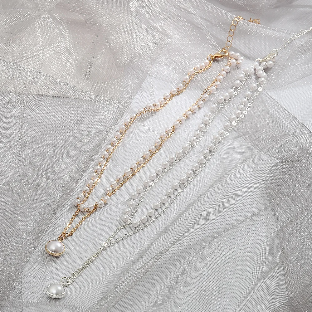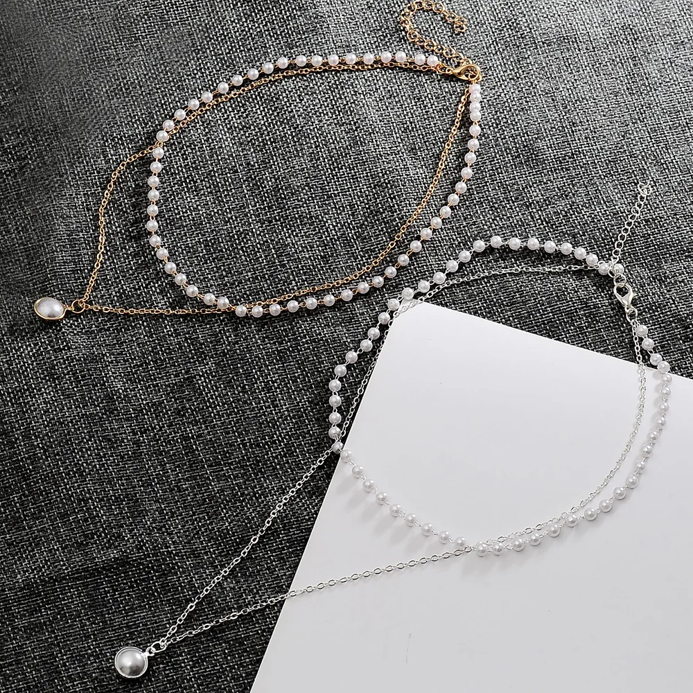 Простое Двухслойное ожерелье с цепочкой из искусственного жемчуга, ...