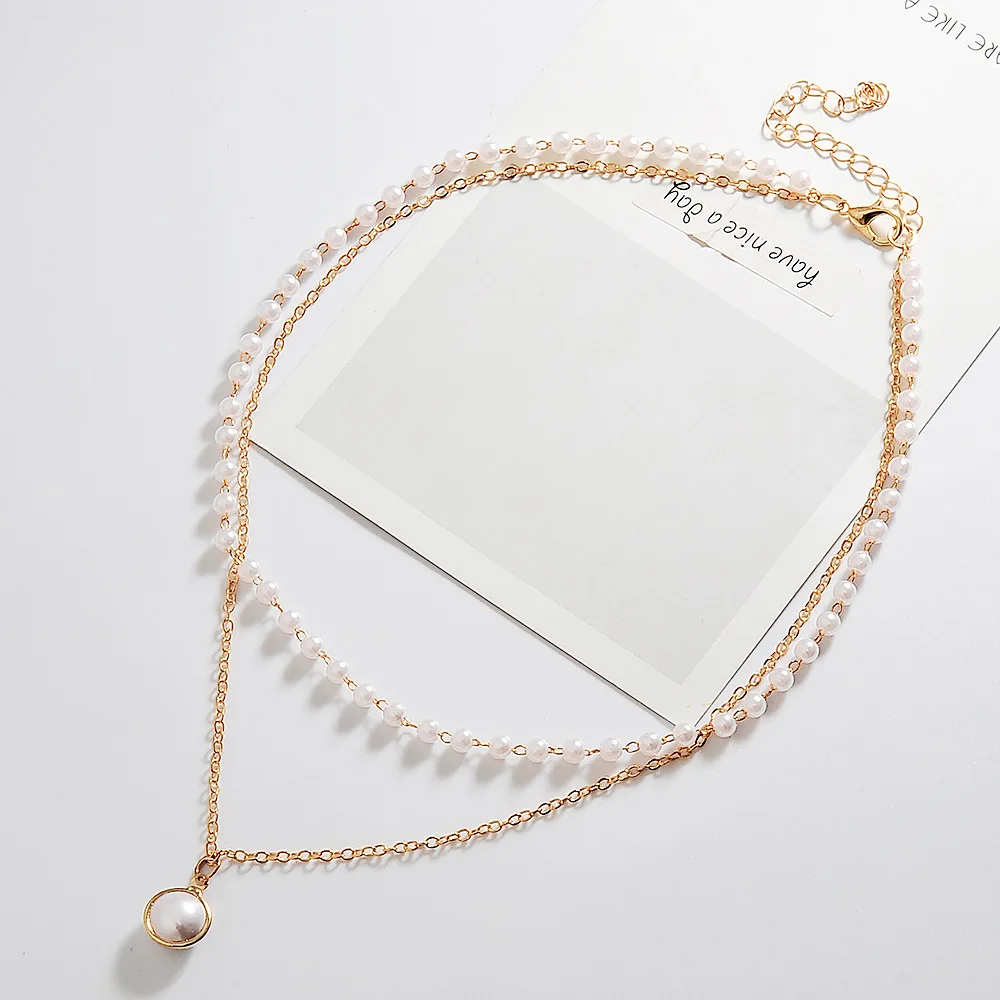 Женское Ожерелье-чокер с жемчугом, Двухслойное ожерелье с подвеской...