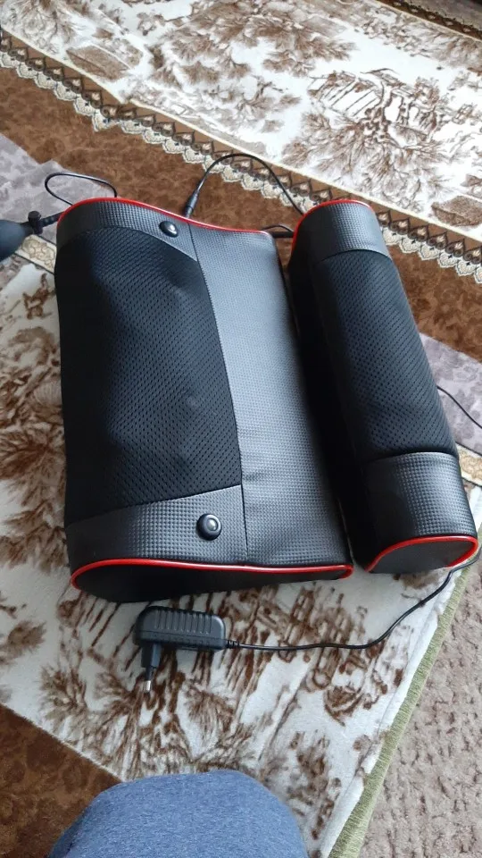 Подушка хорошая. Все как в описании. Работает. Греет. Меняет режимы. Но немного хлипковатая, когда ложишься и опираешься на ролики работают медленнее, меняется звук и как-бы страшно, что долго не проживет. Пришла без коробки, но хорошо упакована в плотный полиэтилен. Доставка оказалась оооочень долгой. Ровно три месяца! Но в общем ставлю 5 звезд. За свои деньги однозначно очень хорошо!!!