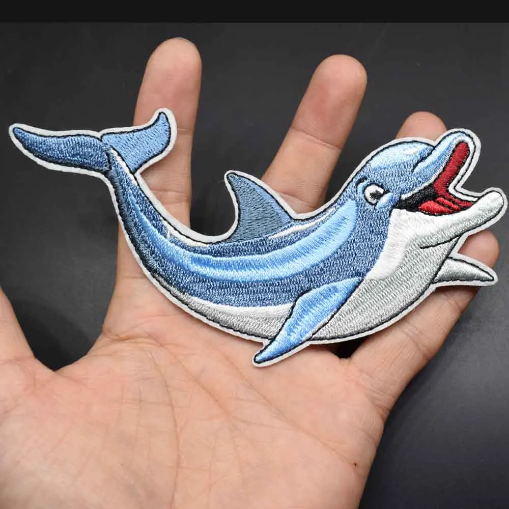Симпатичный Дельфин на тему океана, полностью вышитая ткань с утюгом, нашивка для девочек и мальчиков, наклейки на одежду, аксессуары для одежды