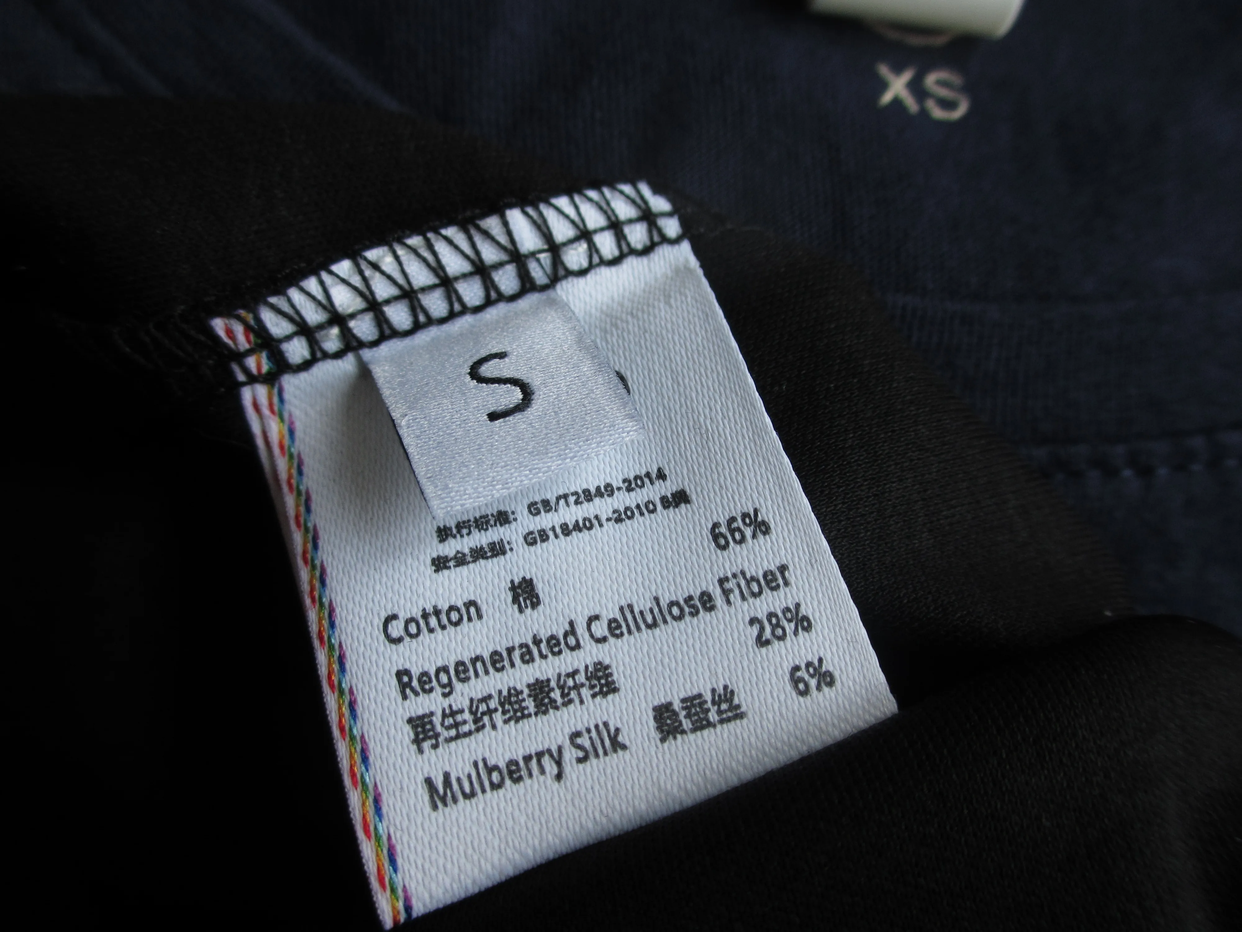 Очень крутое качество у футболки. Размеры точные. На ОГ=103 взяла XXL и это не в обтяжку, а очень комфортная посадка. Своих денег стоит. Смотрится дорого. Доставка супер мега быстрая. Всего 11 дней. Хлопка в составе 66%, шелка 6% и остальное чего-то на китайском. Вискоза. Очень довольна