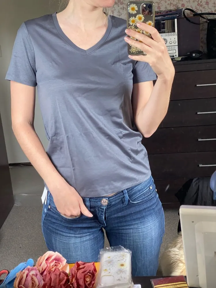 Футболка очень понравилась! До этого заказывала такого же качества, только с длинным рукавом и с другим вырезом. Ткань отличная, продавец один из самых любимых. Доставка молниеносная!