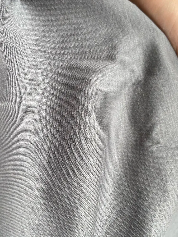 Приятный цвет, хорошее качество. Ожидала более тонкий и более шелковистый, струящийся материал. По факту материал плотный, больше похоже на спортивную футболку.