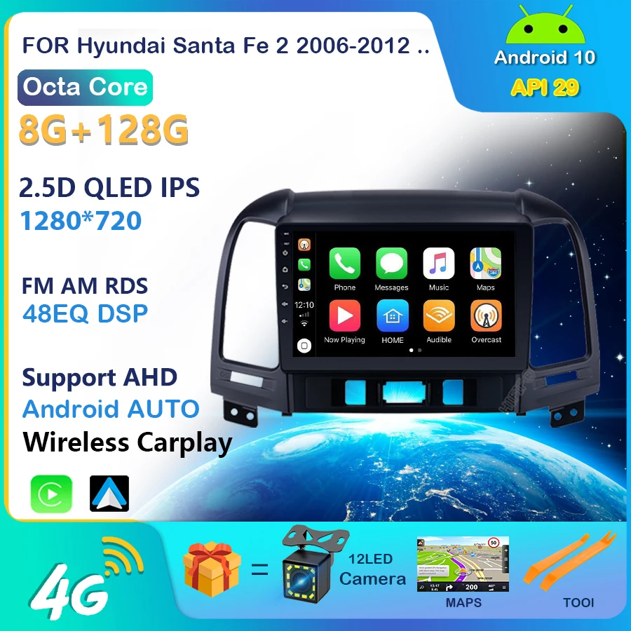 Автомобильный радиоприемник, мультимедийный видеоплеер IPS Android 10 2G + 32G DSP для Hyundai Santa Fe 2 2006-2012 с GPS-навигацией, 2 din, без dvd