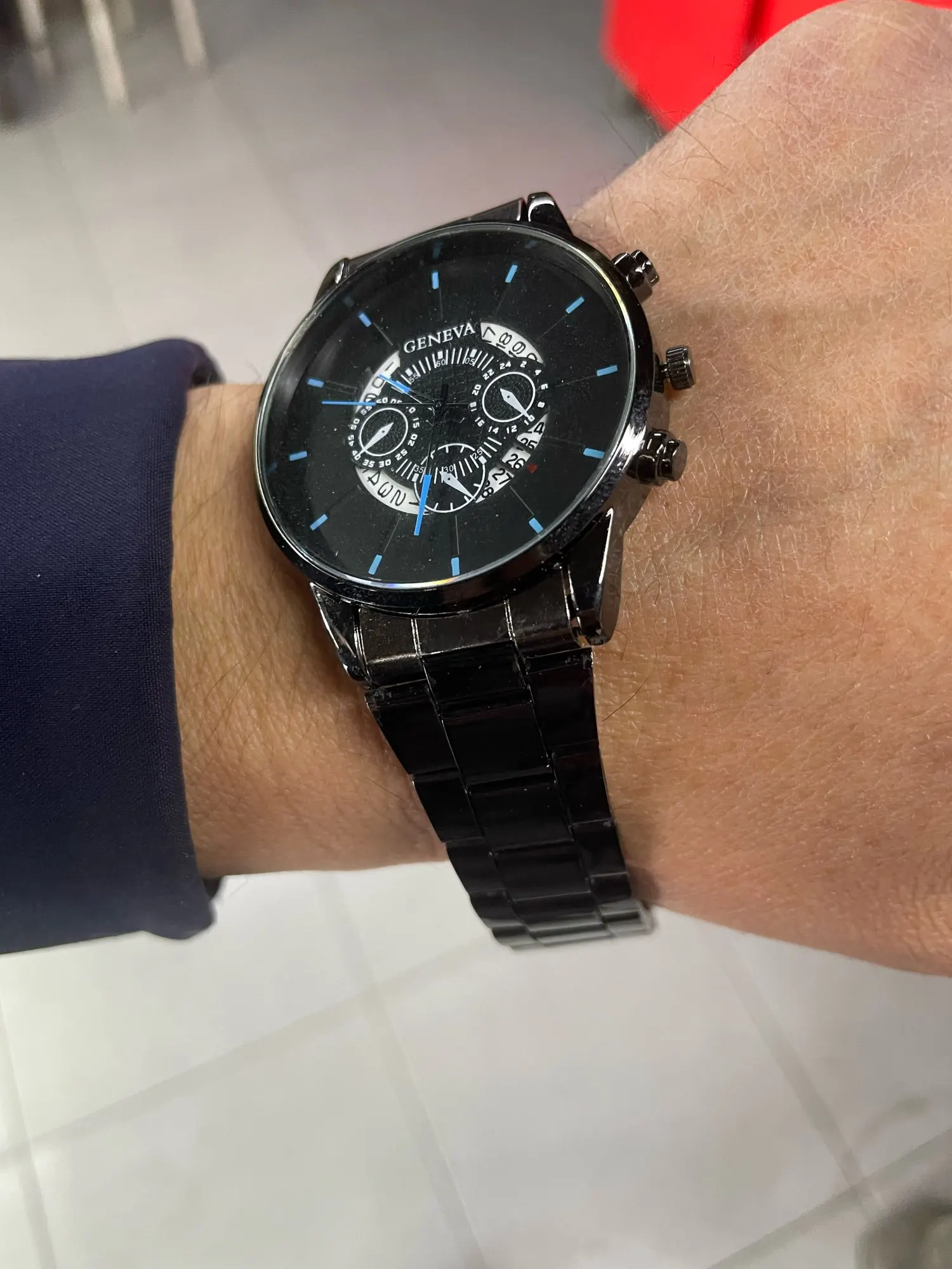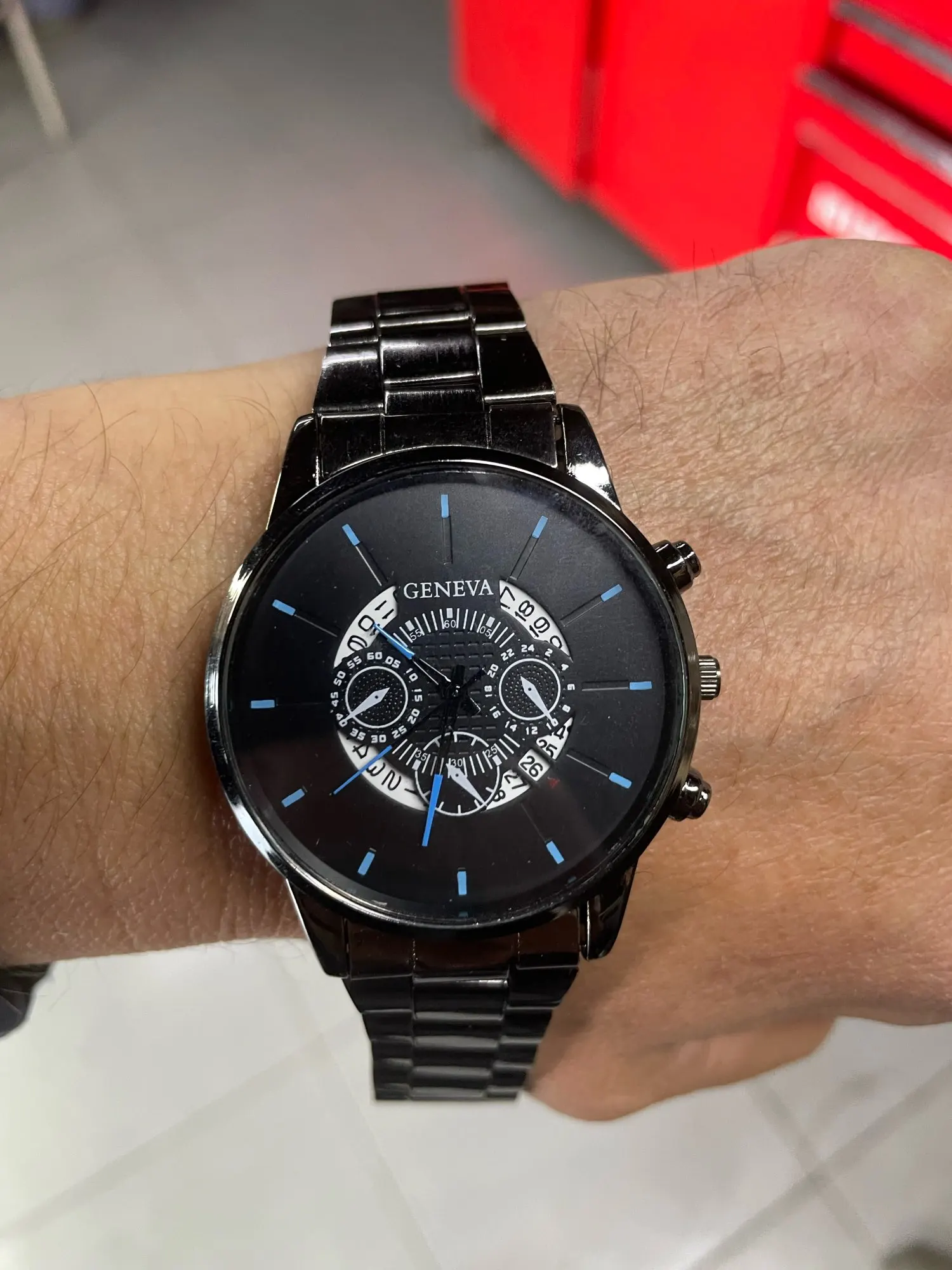 Классический дизайн Geneva, мужские наручные часы, хит продаж, модные мужские кварцевые наручные часы, черные, нержавеющая сталь, Reloj Hombre, мужские часы