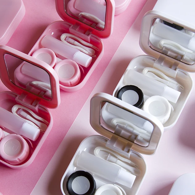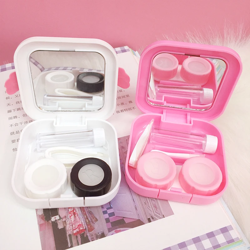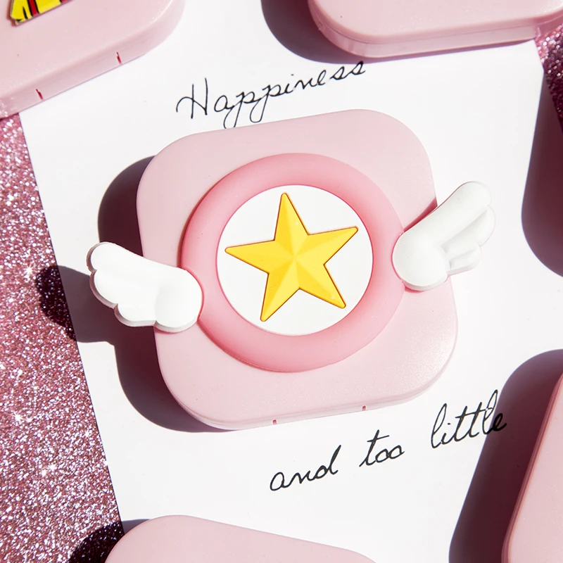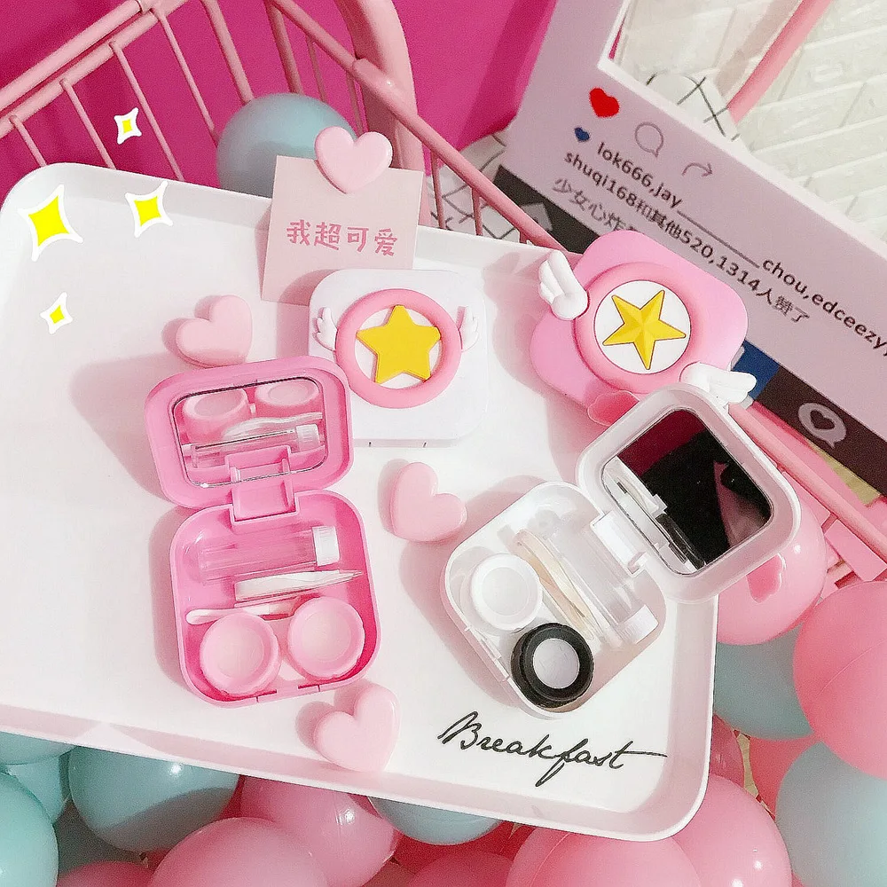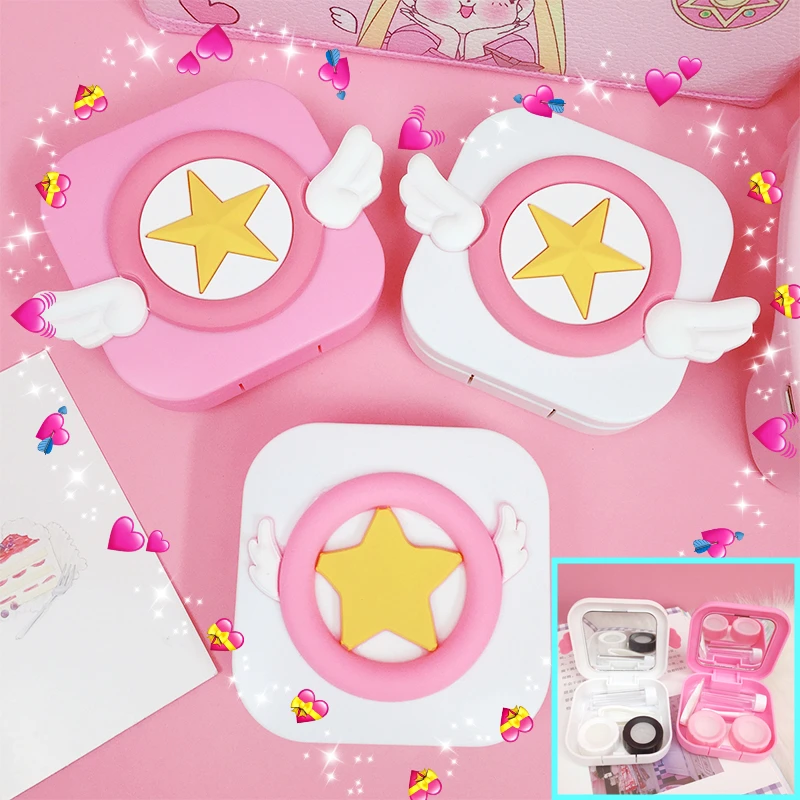 Японские Мультяшные контактные линзы с крыльями сакурыПереносной Контейнер для хранения очков с зеркалом подарок для студентов и девочек