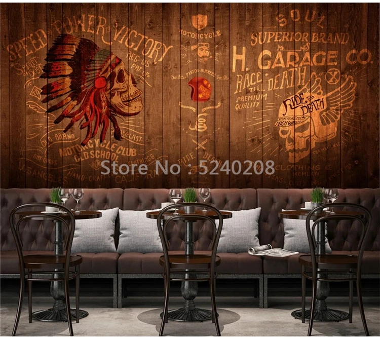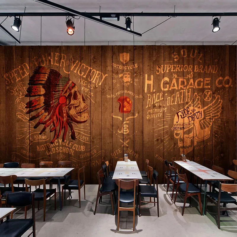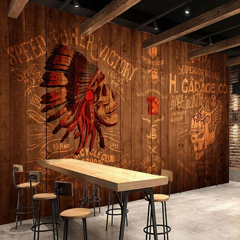 Пользовательские самоклеющиеся обои 3D деревянная доска граффити мотоцикл Ресторан Бар КТВ росписи водонепроницаемые художественные настенные наклейки Fresco