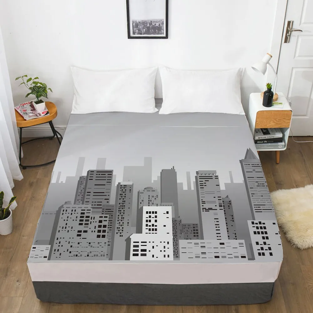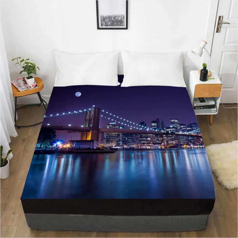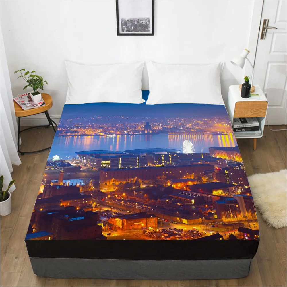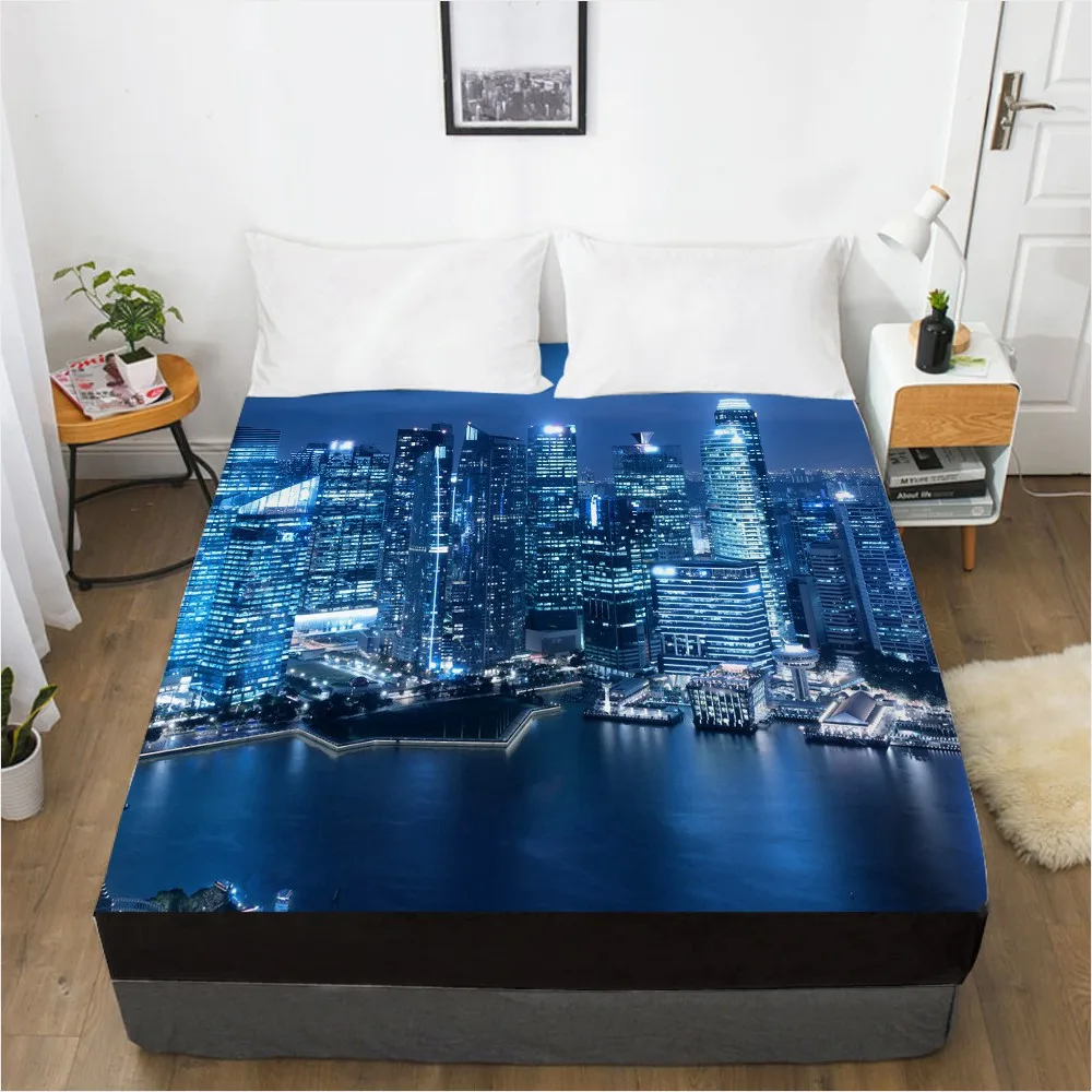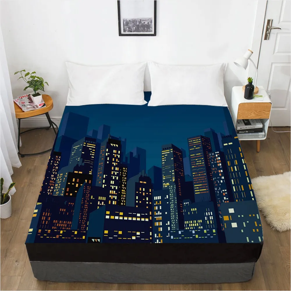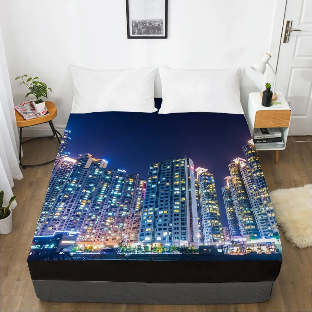 Простыня 3D HD с цифровой печатью на заказ, эластичная простыня, натяжная простыня 160x200 см 150x200 180x200, покрывало для матраса, городская ночь