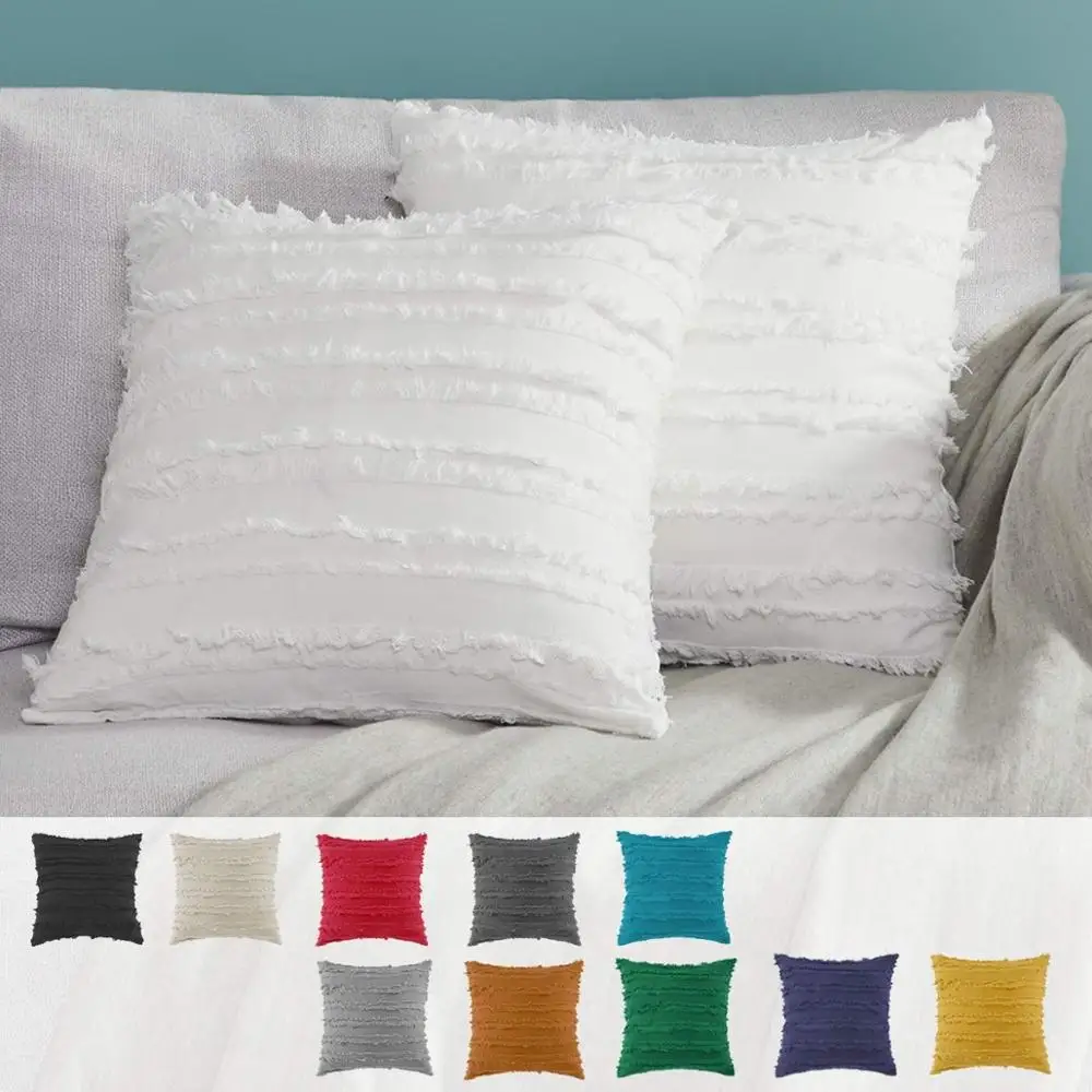Современные белые бархатные полосатые наволочки 45x45 для дивана, дивана, кровати, гостиной, наволочки, набор из 2 квадратных наволочек$14,99$21,41