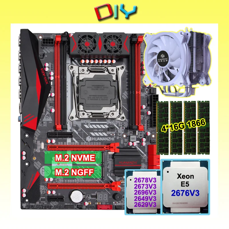 HUANANZHI X99-AD3 V3.0 материнская плата combo DIY Процессор Ксеон E5 2676 V3 и т. Д. Процессор кулер Оперативная память 64G(4*16G) 1866 rec гарантия хорошего качества