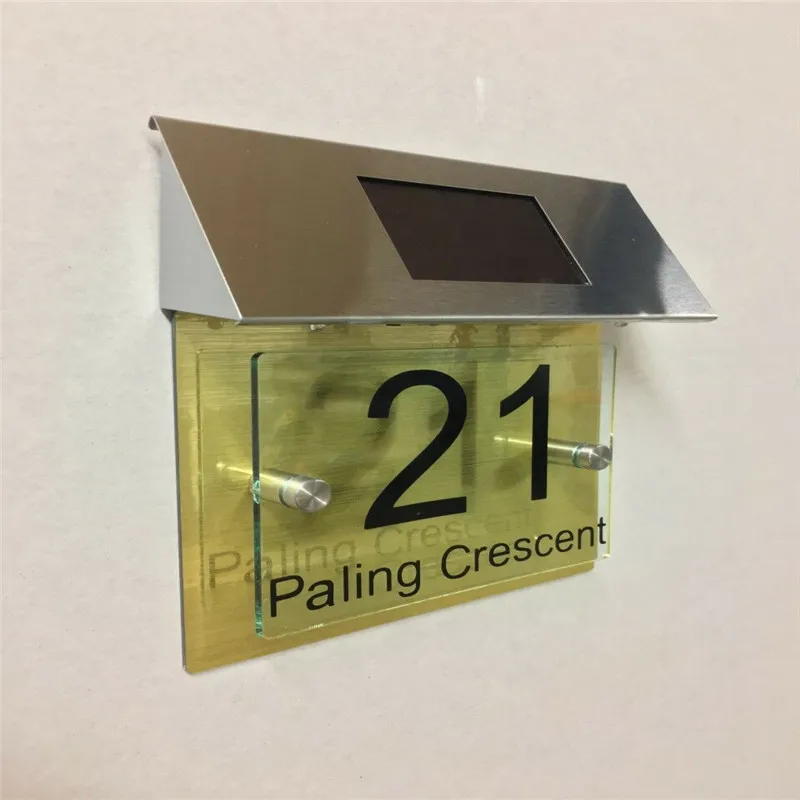 Современный Солнечный знак на дом Пожалуйста, оставьте номер двери и название улицы, которое вам требуется при оплате в примечаниях, или отправьте нам сообщение после покупки Современный солнечный светильник из нержавеющей стали (Номинальное значение ip44) 5 мм акриловая передняя пластина из прозрачного стекла Задняя панель с эффектом алюминия Поставляемые стойки и фиксаторы из нержавеющей стали Внешний глянцевый черный винил с вашим выбором номера и названия улицы или дома Times new roman (если не указано иное)Акриловый знак: 100/140 ммОбщая прибл. 170 мм/190 мм табличка