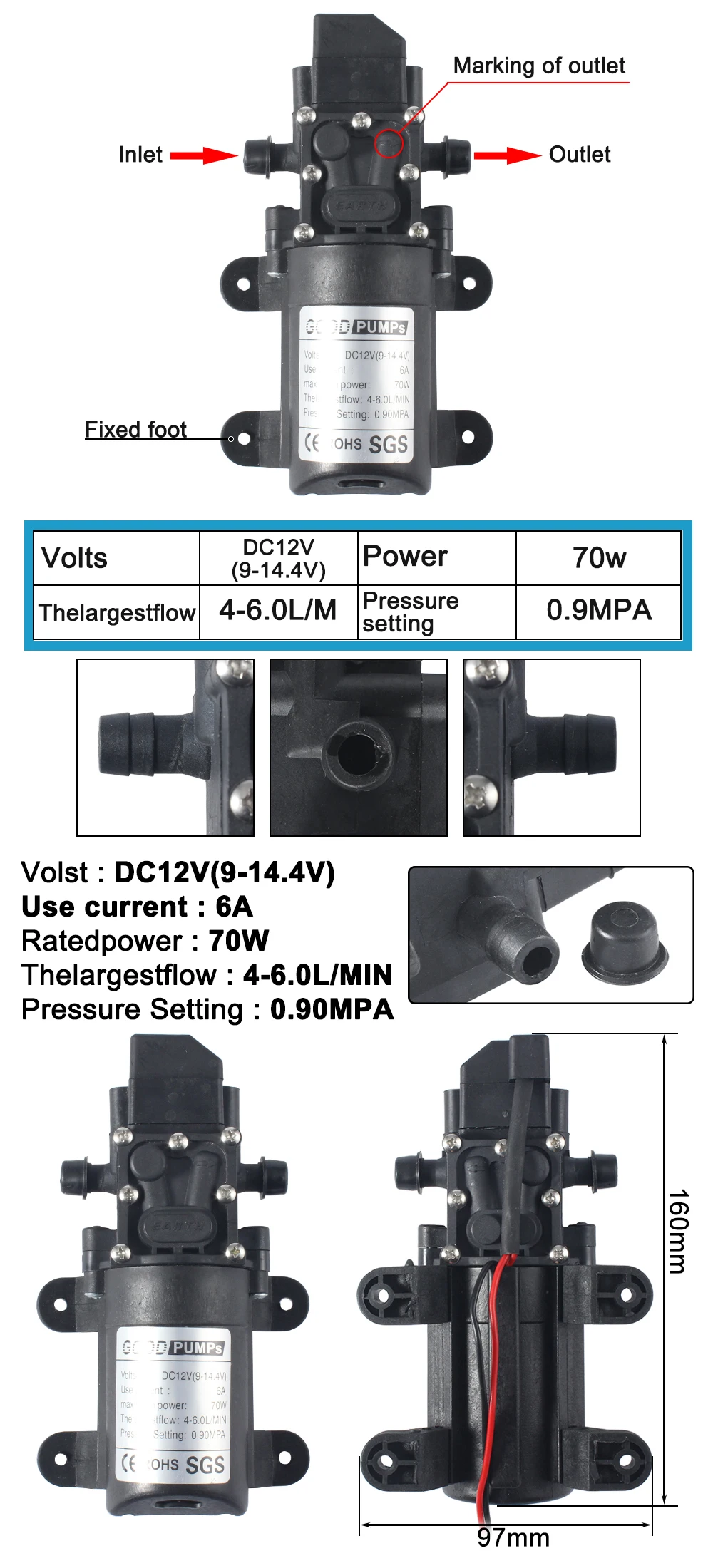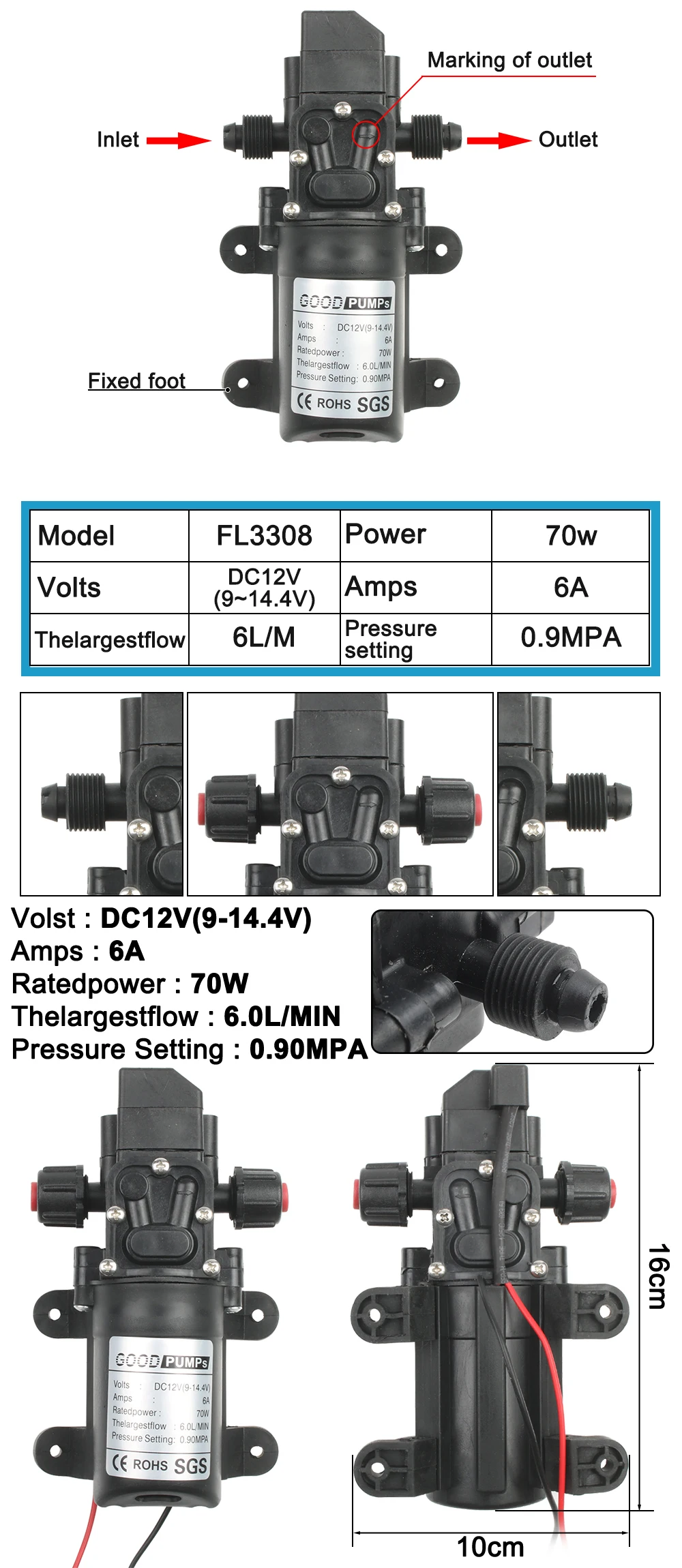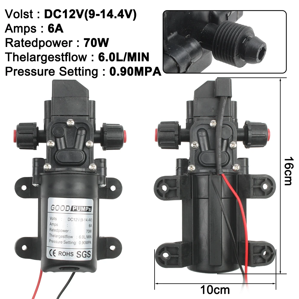 Самовсасывающий насос высокого давления, 12 В постоянного тока, 130 фунтов на квадратный дюйм, 6 лмин, 70 Вт, 72 Вт, с Европейским источником питания, 6 А трубкой