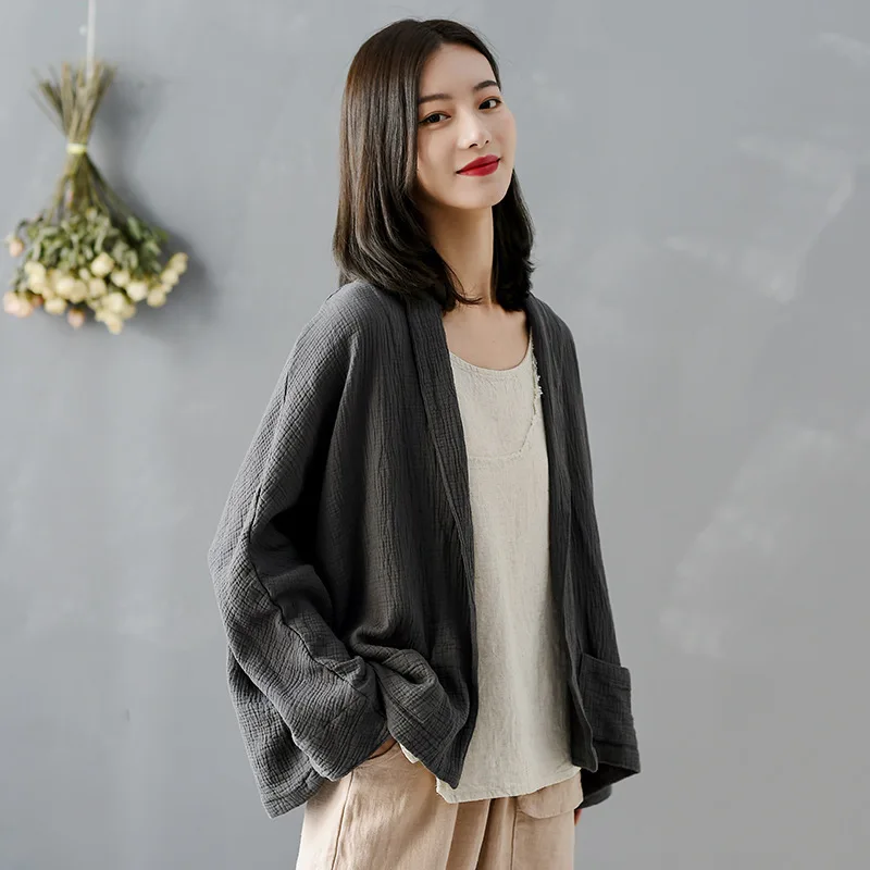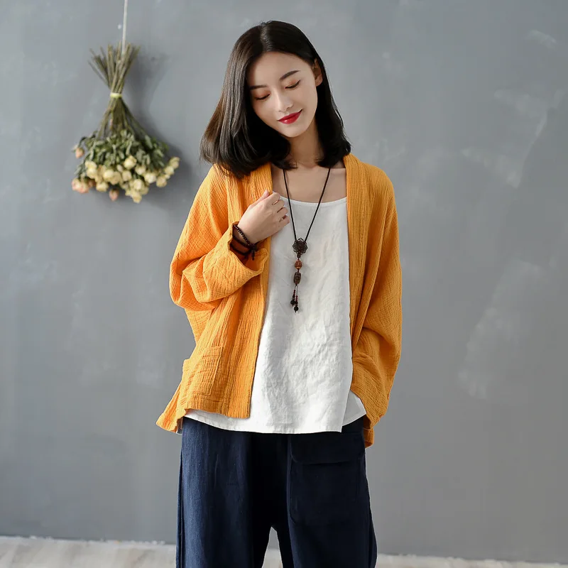 Куртка женская хлопково-Льняная в винтажном стиле, однотонная верхняя одежда из хлопка и льна в стиле ретро, топ, весна-лето 2020