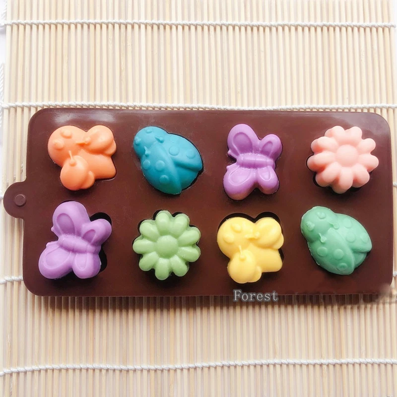Силиконовая формочка в виде цветов для насекомых сделай сам, форма сделай сам с 8 отверстиями, Бабочка, пчела, божья коровка, торт, помадка, кухонные инструменты для выпечки, лоток для мыла ручной работы