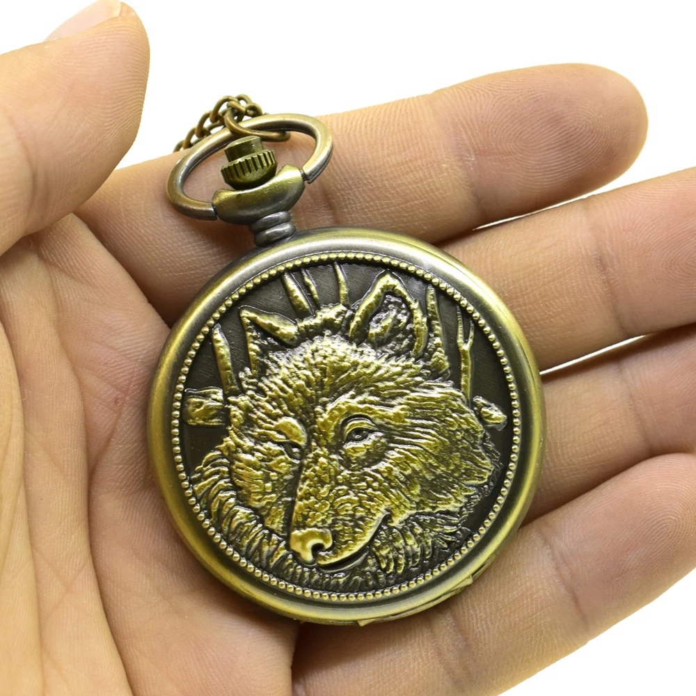 Часы мужские карманные в ретро стиле, крутые с тиснением под бронзу, с круглым циферблатом из сплава, арабские, с цепью