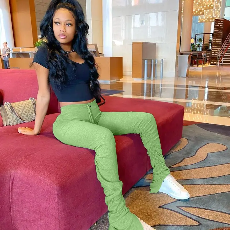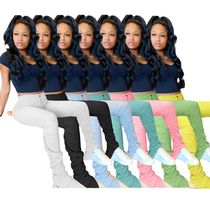 Женские спортивные штаны HAOYUAN, эластичные летние леггинсы с высокой талией, леггинсы с разрезом, расклешенные брюки с рюшами, 2021