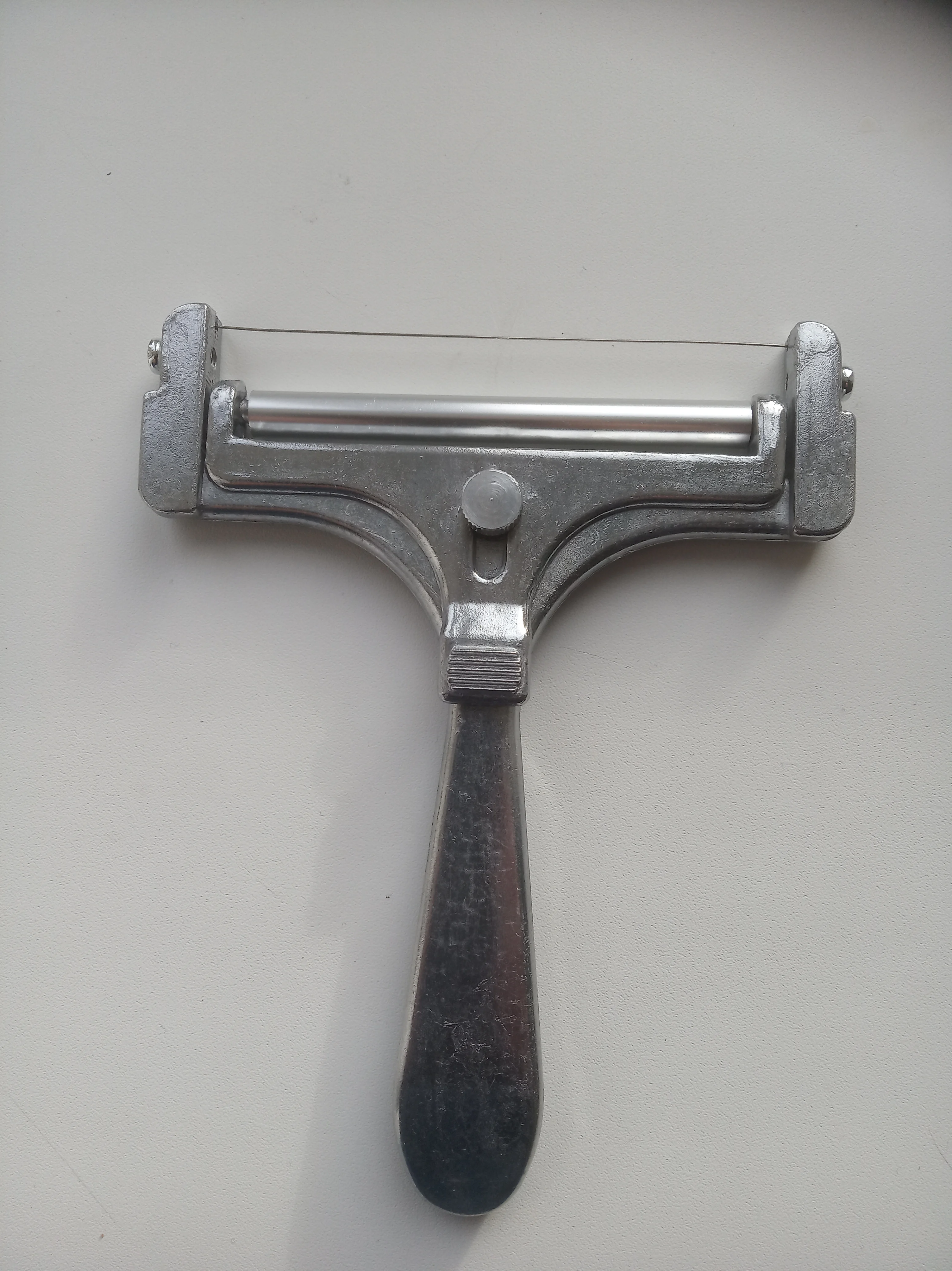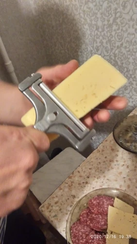 ..Покупкой в целом доволен)).. Оплата = 287,64 российскими. Доставка обычная. Регулировка интуитивно понятна. Внешне смотрится топорно, но с сыром справляется на 'Ура!' Жалеть не о чем. Главное, не забывайте тщательно омывать прибор - так алюминий - это не сталь. Если не перетягивать винты (без фанатизма), то прослужит долго. Ширина резака хорошая. Нить крепкая. Ручка удобная. Валик вертится легко, а по сыру катится с хорошим сцеплением.. Как и со всеми приборами планеты - требуется сноровка для получения удовольствия от "работы", которая добывается путём упорных тренировок..