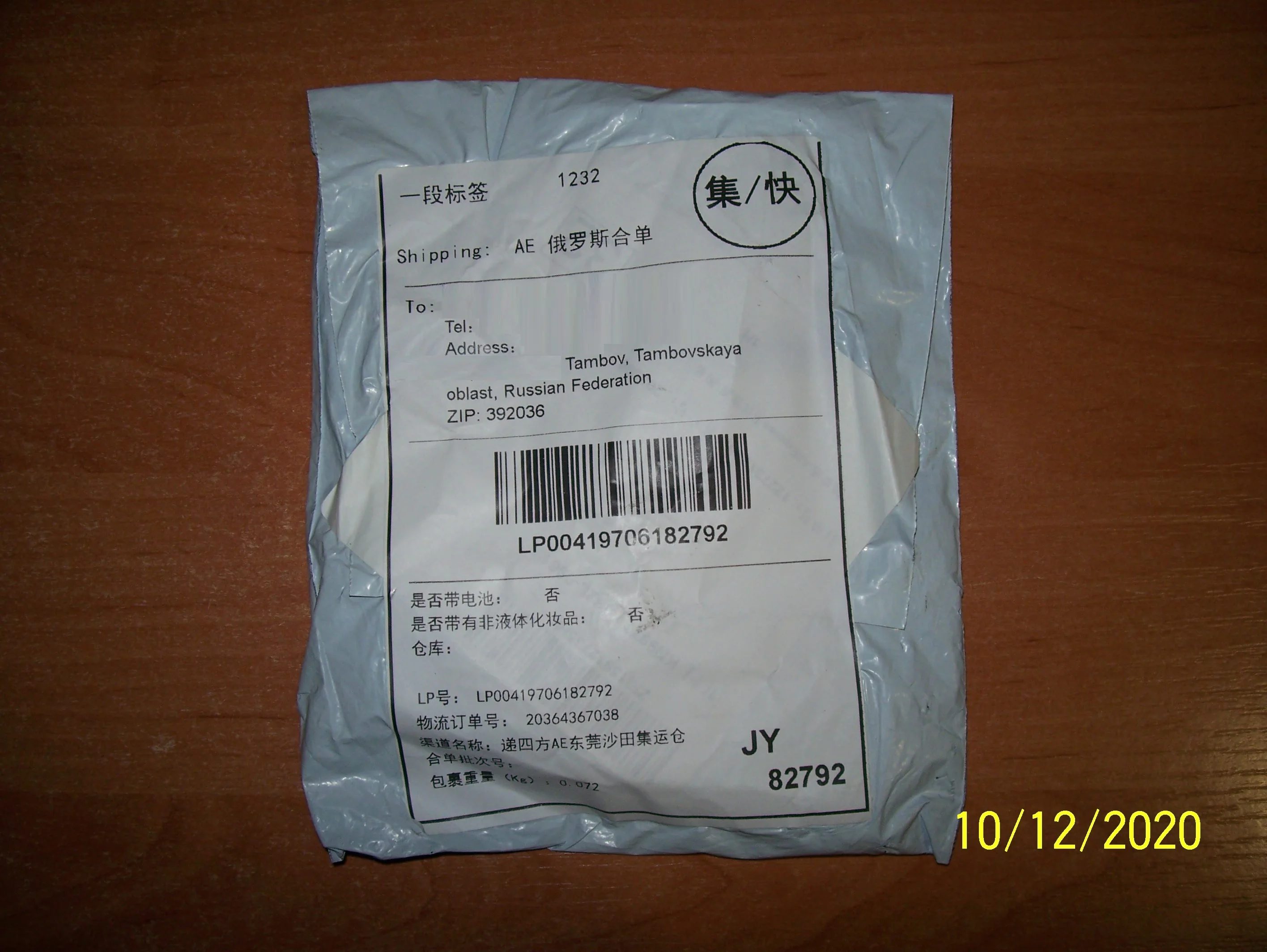 За 9 дней пришла посылка в Москву, товар целый.