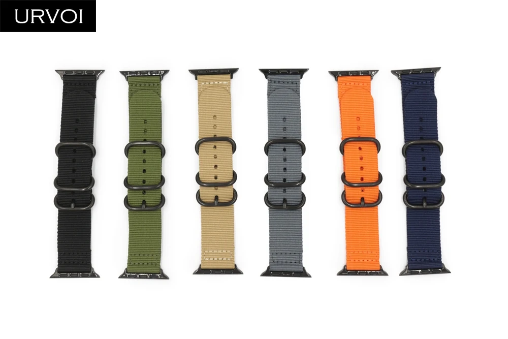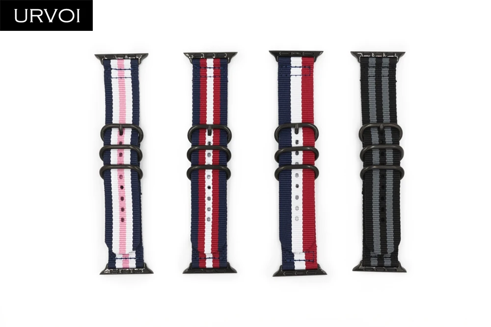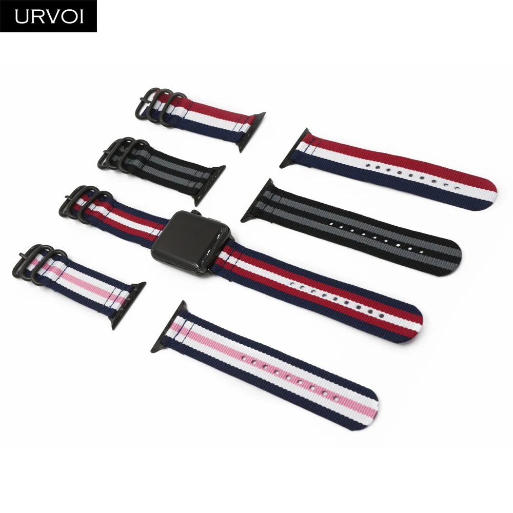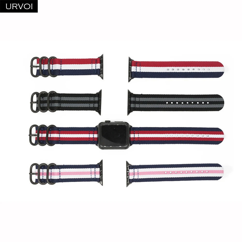 Ремешок URVOI для apple watch Series 5, 4, 3, 2, 1, плетеный нейлоновый ремешок NATO для iwatch, двойные кольца, цвета с адаптерами, 40, 44 мм