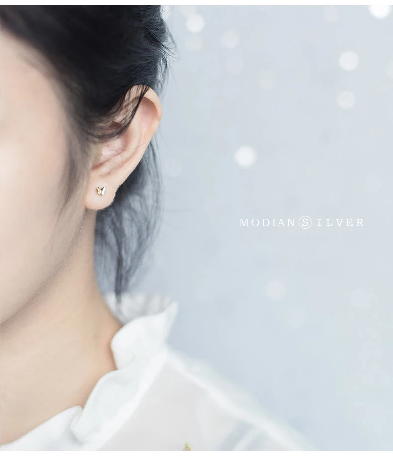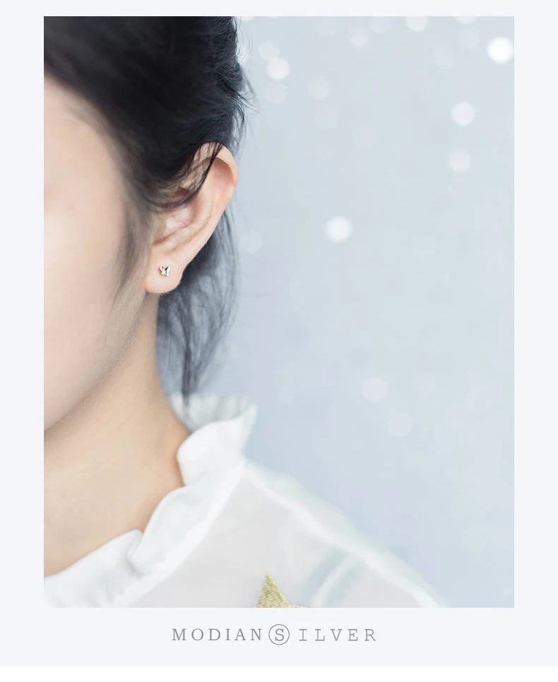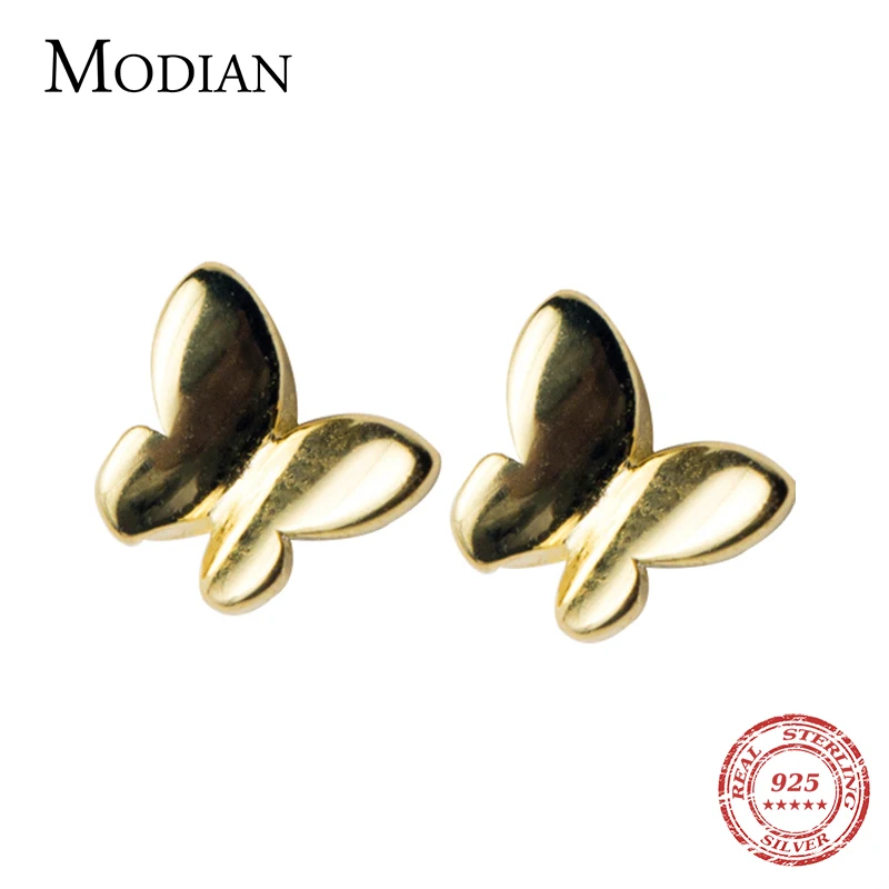 Серьги-гвоздики Modian с летающей бабочкой золотого цвета, элегантные серьги для девочек и детей, ювелирные украшения из стерлингового серебра 925 пробы