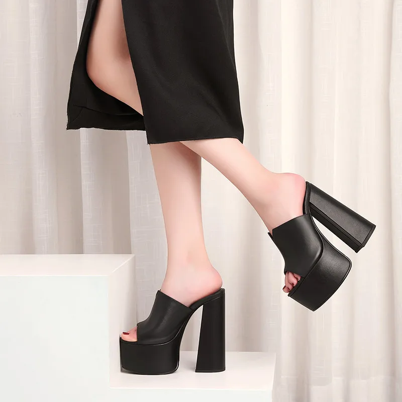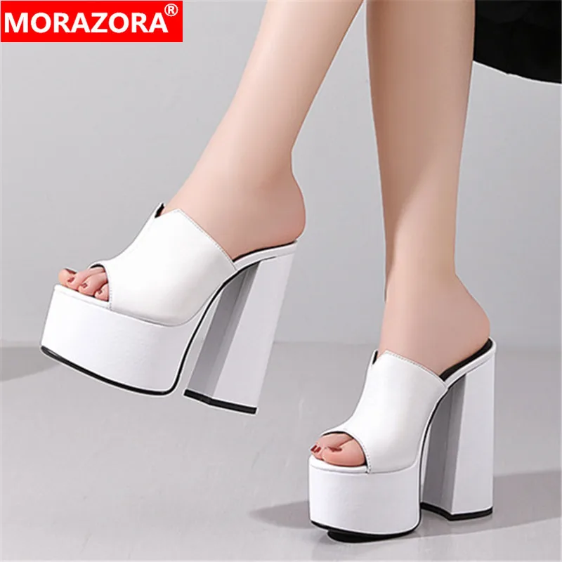 Женские туфли без задника MORAZORA, черные туфли из натуральной кожи, на платформе, на очень высоком каблуке, большие размеры, лето 2022