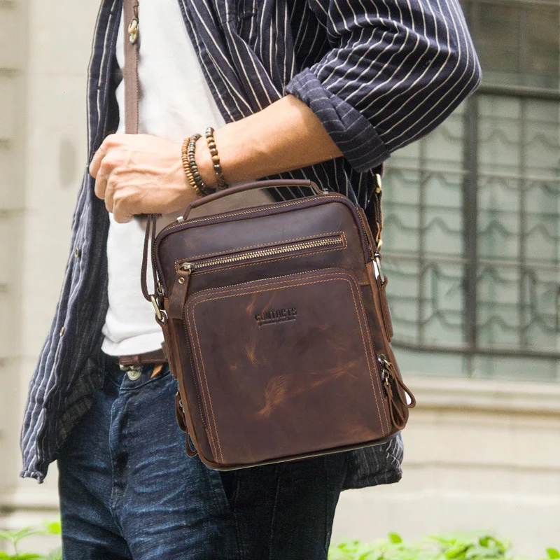Сумка на плечо мужская из кожи Крейзи Хорс, брендовая Винтажная сум...