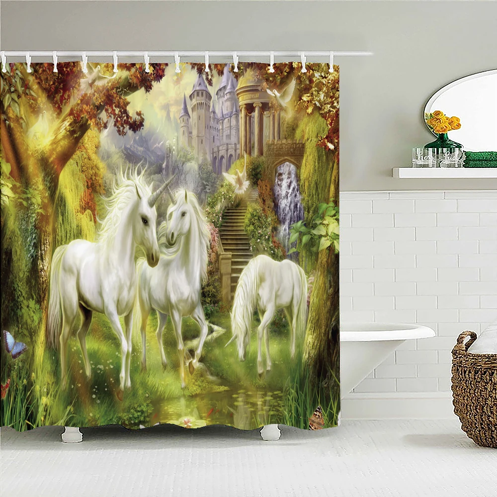 Девушки единорог мультфильм прекрасный Душ шторы Водонепроницаемая занавеска для ванной полиэстер ткань Декор Ванна занавеска 180*180 см с крючками