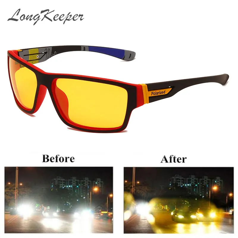 LongKeeper квадратные поляризованные очки ночного видения для мужчин и женщин, мужские солнцезащитные очки для вождения