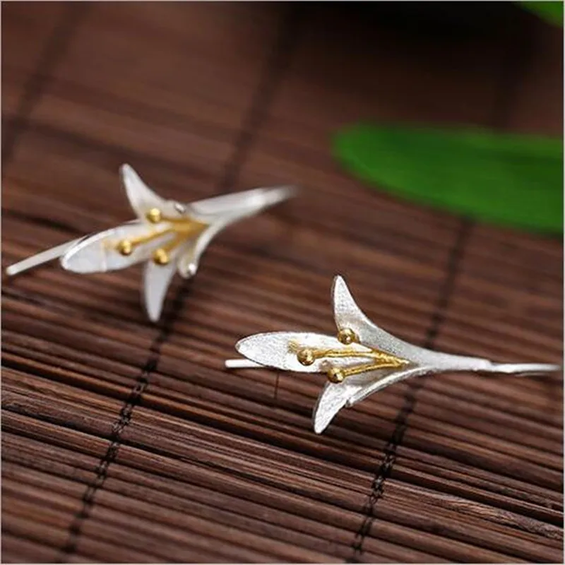Новые модные темпераментные серьги E090 в виде цветков из тайского ремесла посеребренные ювелирные изделия с заушным крючком в виде большой орхидеи популярные серьги