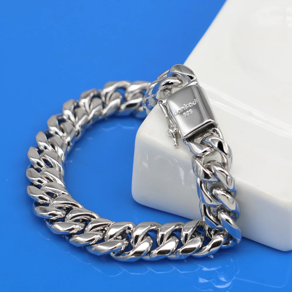Модные оригинальные серебряный браслет 100% 925 серебро кубинская цепь для мужчин ювелирные изделия стерлингового серебра браслет в стиле хип-хоп в едином положении во время занятий легкой атлетикой де Прата