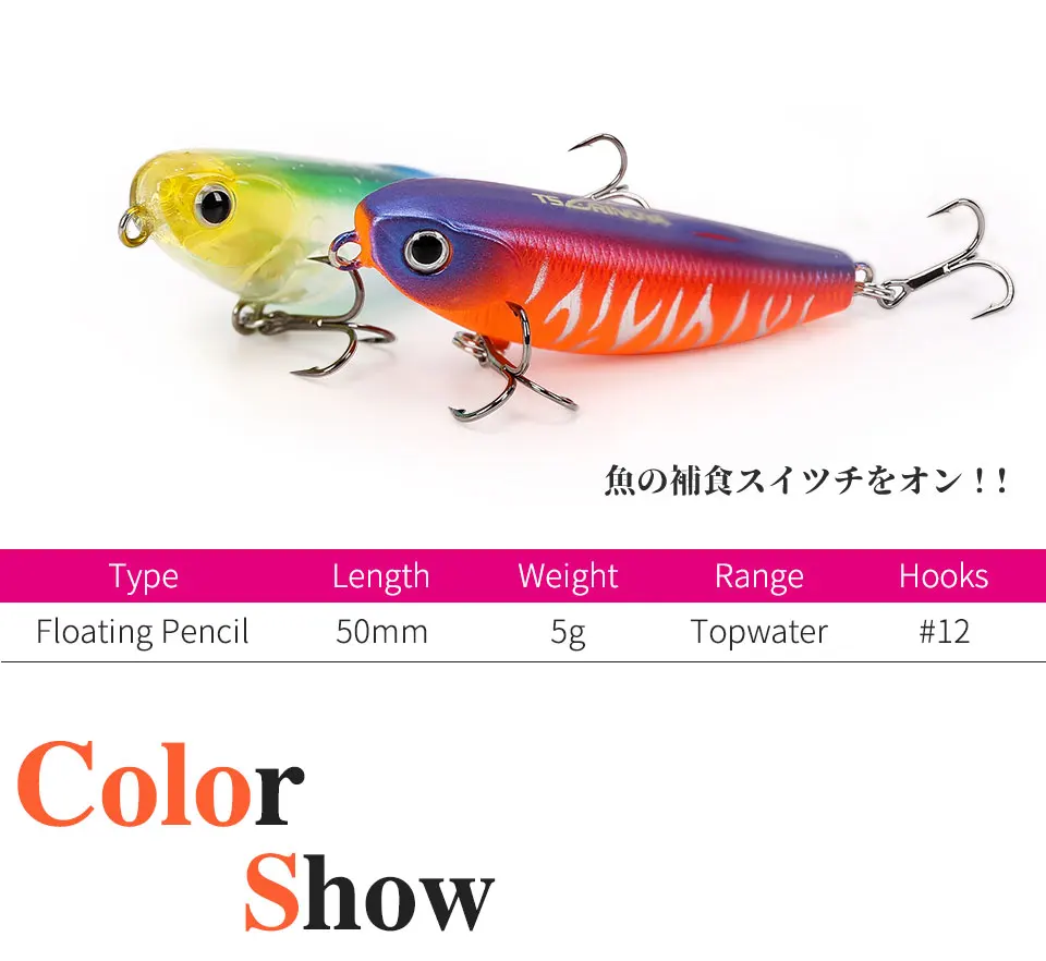 TSURINOYA Topwater рыболовная приманка DW62 плавающий карандаш жесткая приманка 50 мм 5g мини-карандаш искусственные жесткие приманки окунь форель Щука воблер
