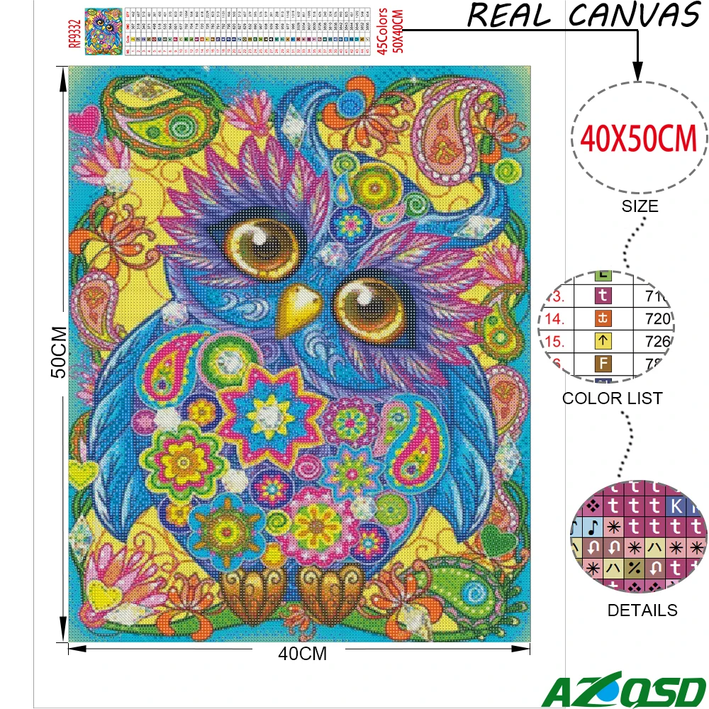 AZQSD Алмазная вышивка Сова полная квадратная Алмазная мозаика для ...