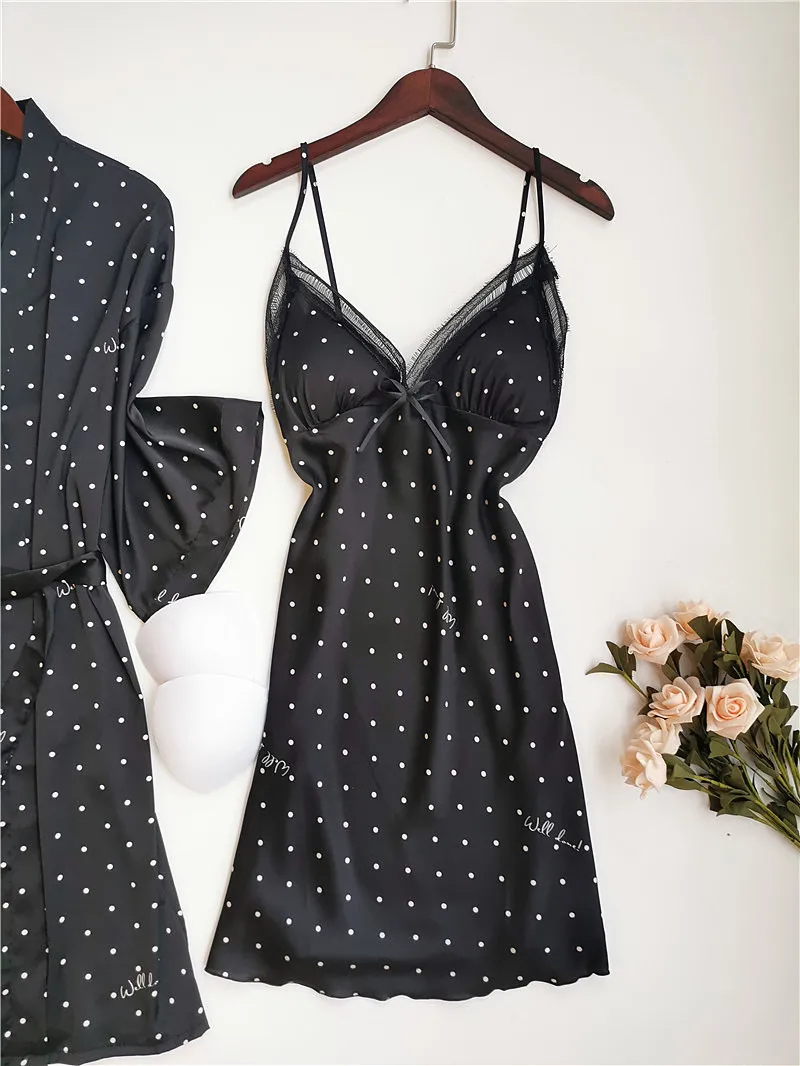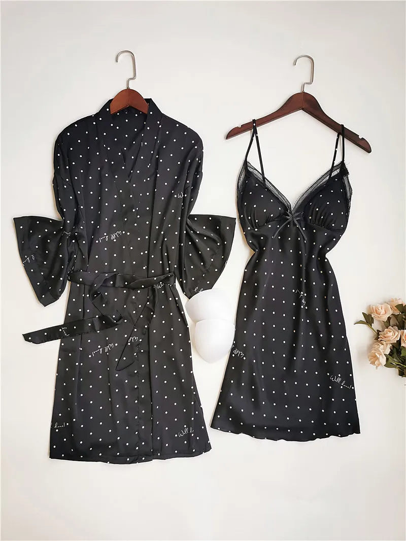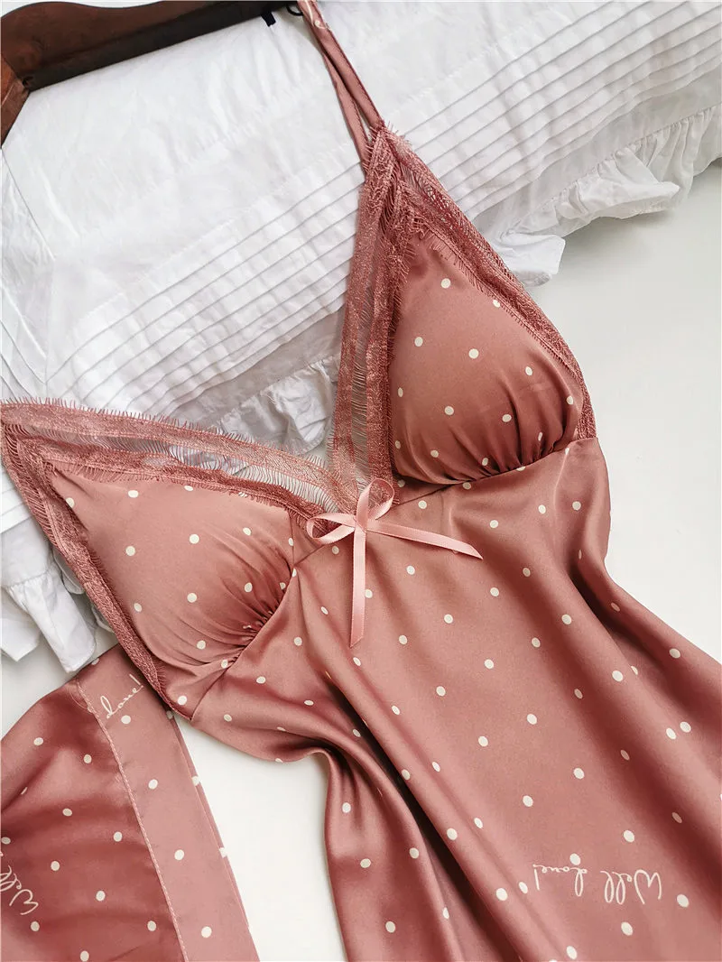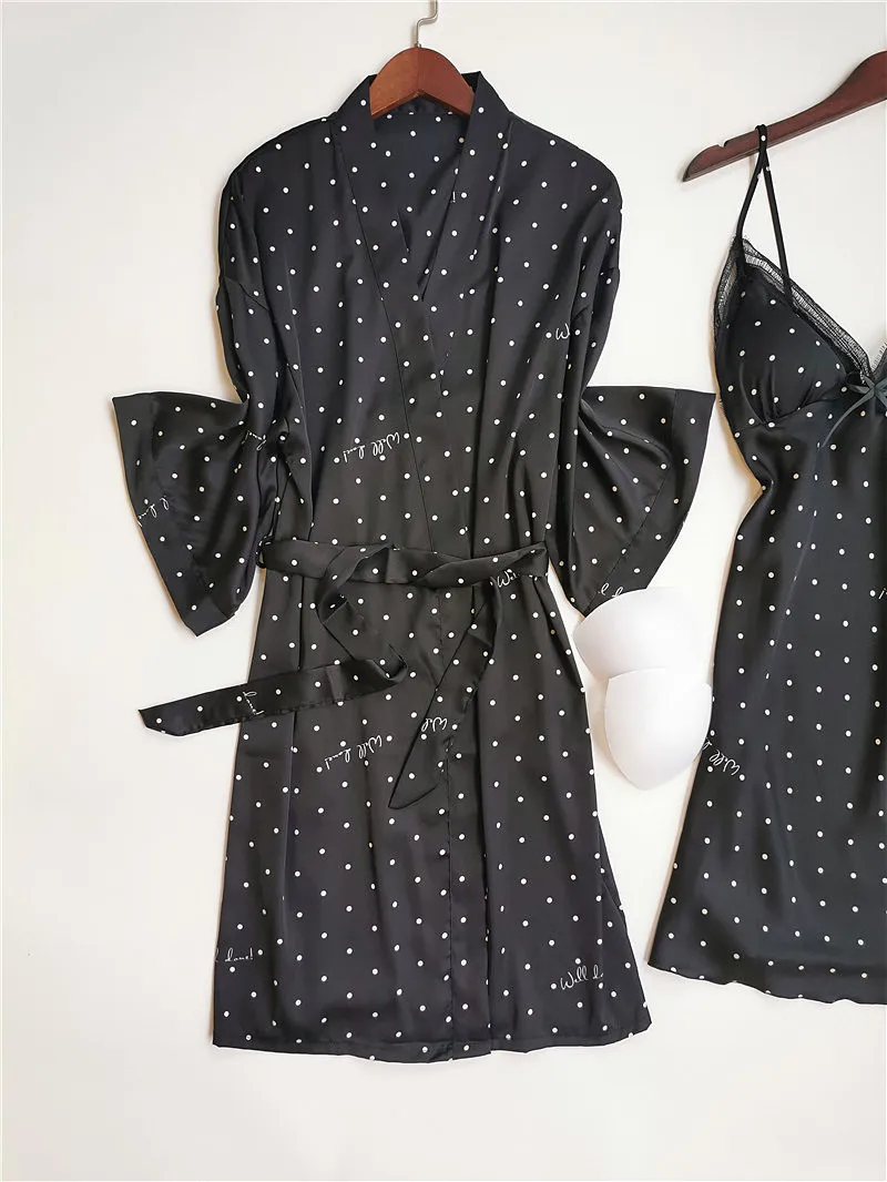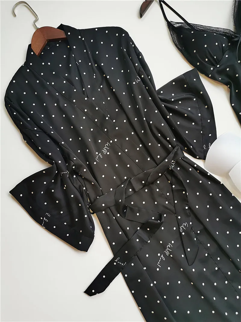 Женский халат в горошек, летний сексуальный костюм с кардиганом, ночная рубашка
