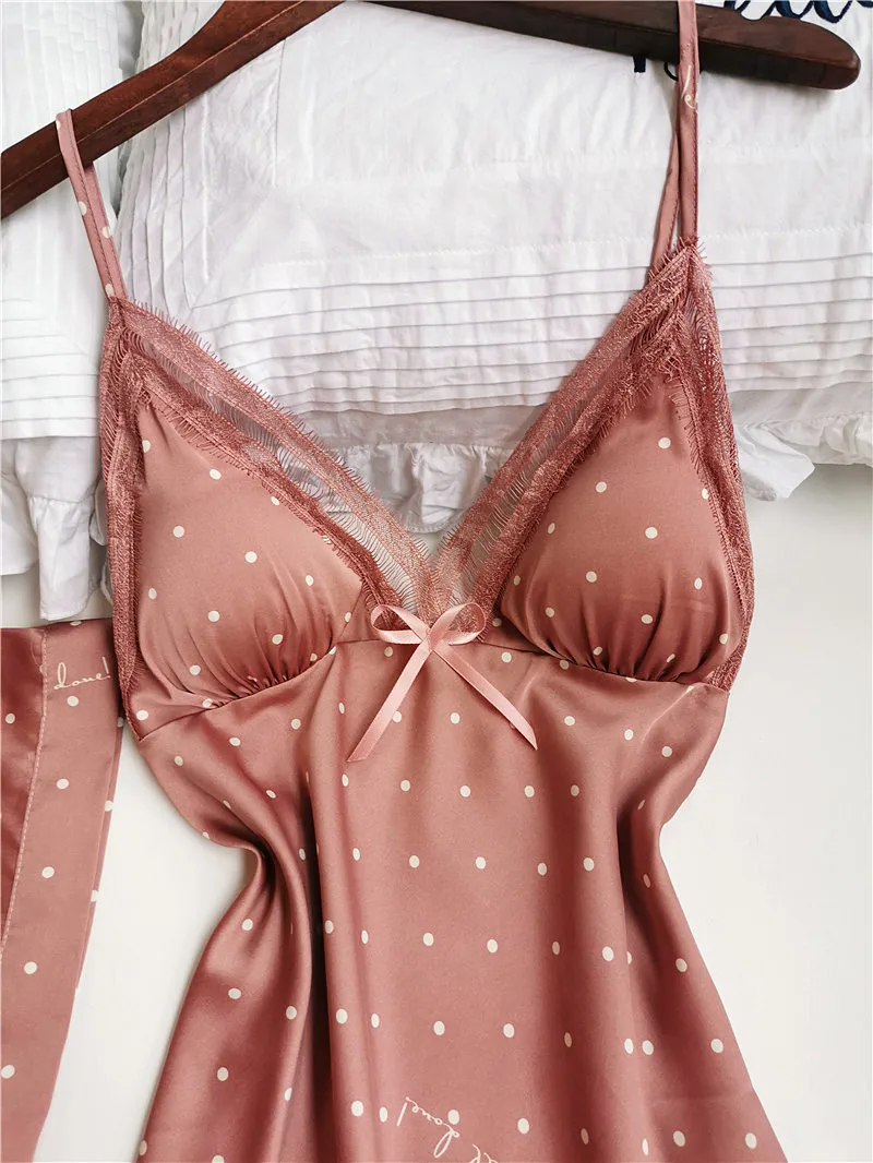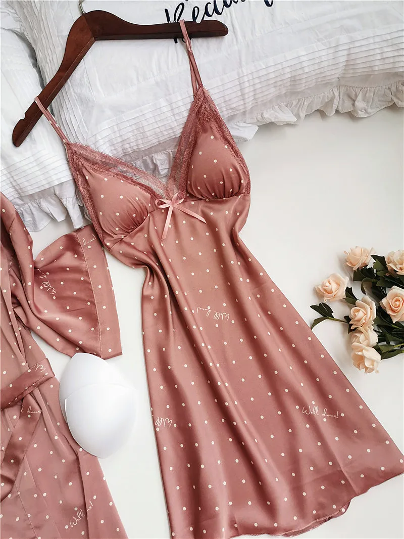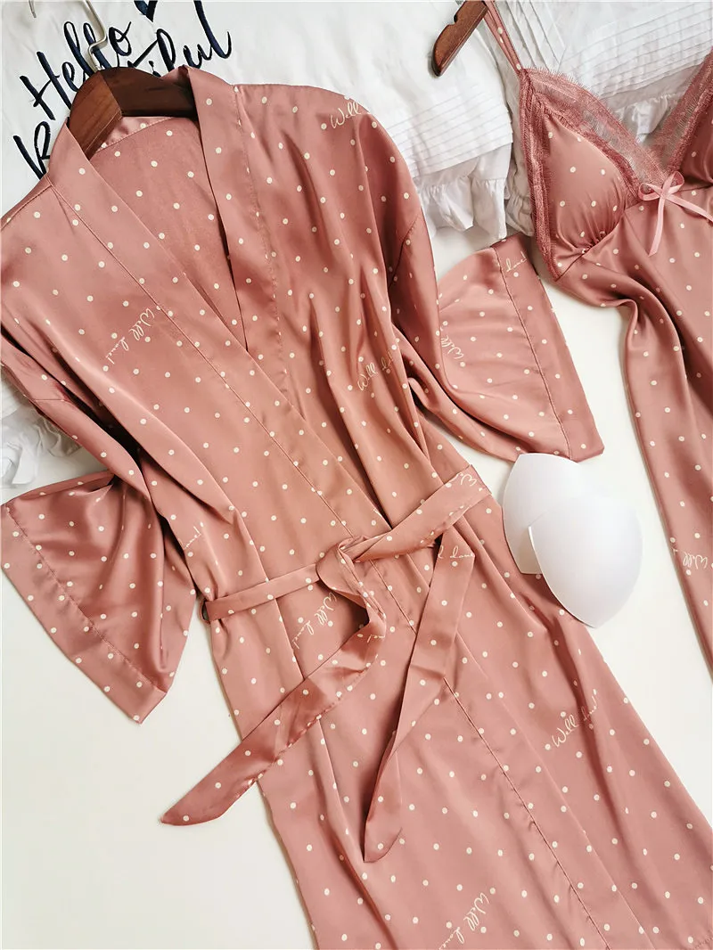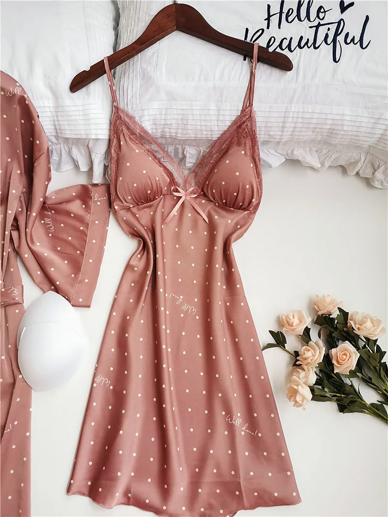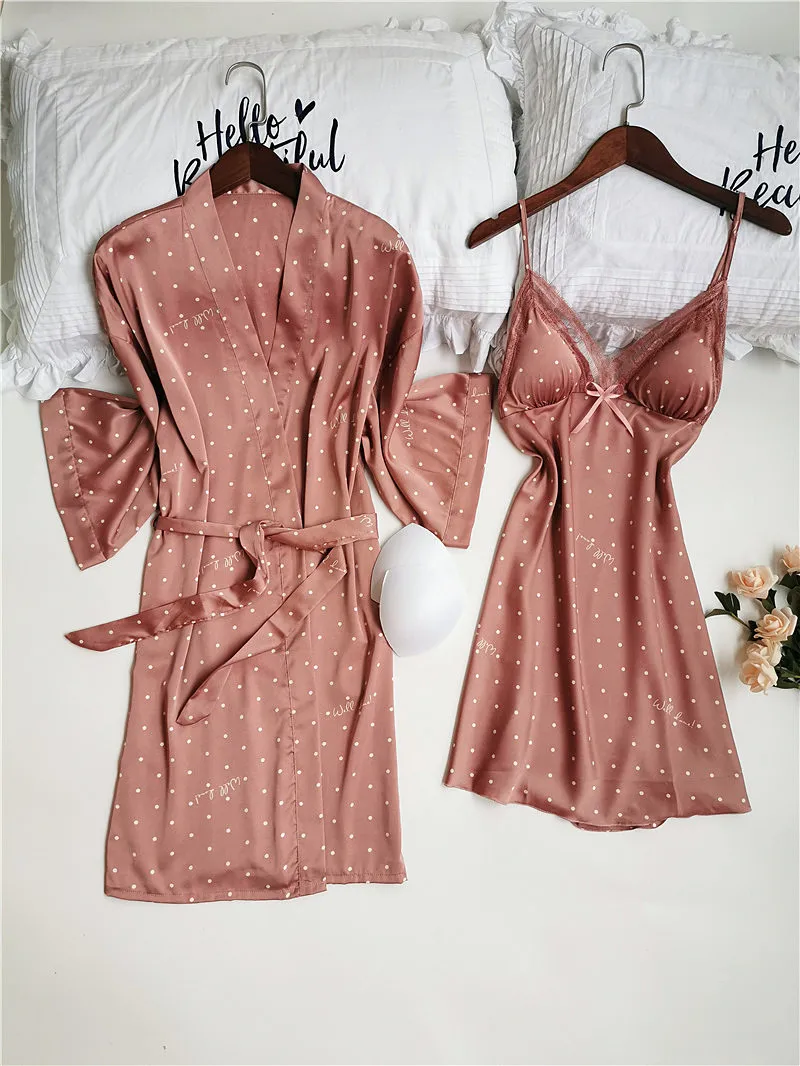 Женский халат в горошек, летний сексуальный костюм с кардиганом, ночная рубашка