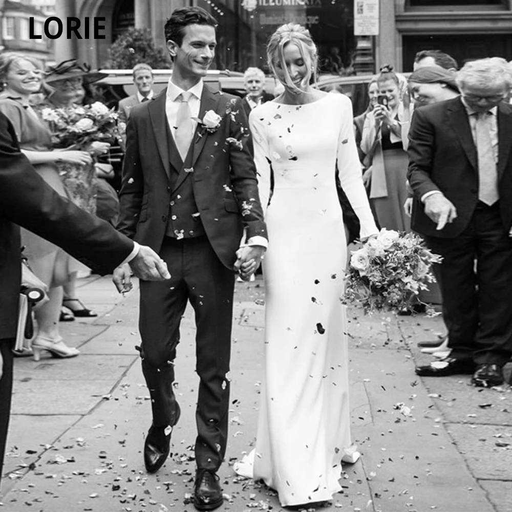 LORIE элегантное простое свадебное платье с длинным рукавом атласное 2020 свадебное платье с О-образным вырезом и открытой спиной Русалка Свадебные платья со шлейфом