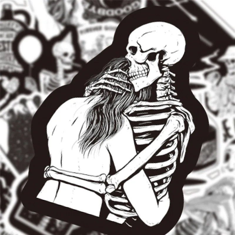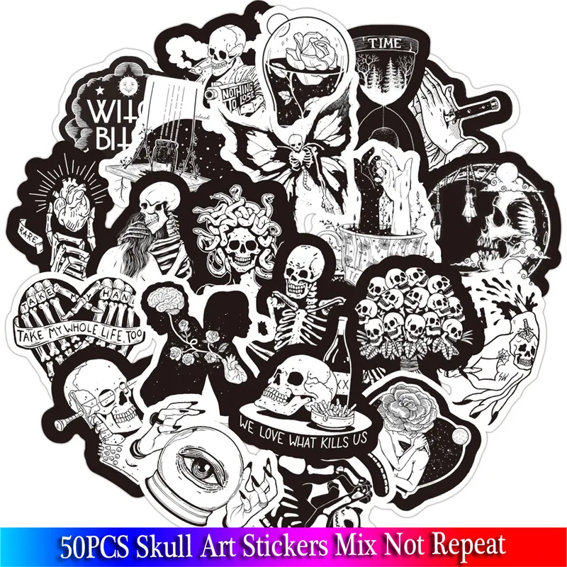 50 шт. черно-белый скелет готический наклейки в стиле панк Набор для мальчиков чемодан скейтборд ноутбук Mac водонепроницаемые наклейки