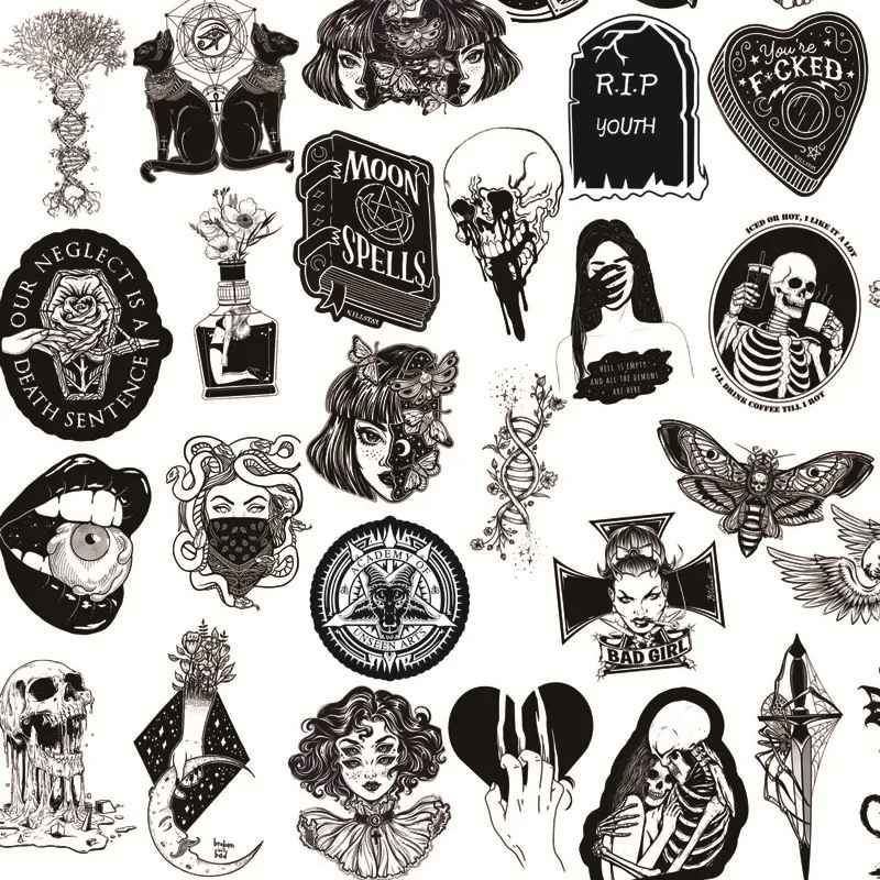 Стикеры Three Ratels 50 шт. в черно-белом готическом стиле для дево...
