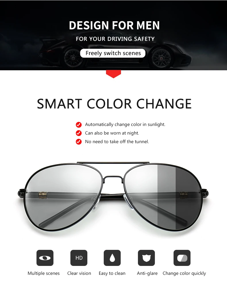 Солнцезащитные очки Мужские фотохромные, поляризационные, для вождения, хамелеон