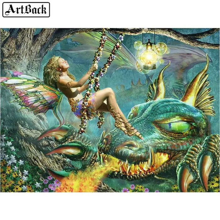5d алмазная роспись дракона Фея полный квадратныйкруглый эльф Огненный Дракон Ангел девочка полностью из мастики стикер домашнего декора мозаика