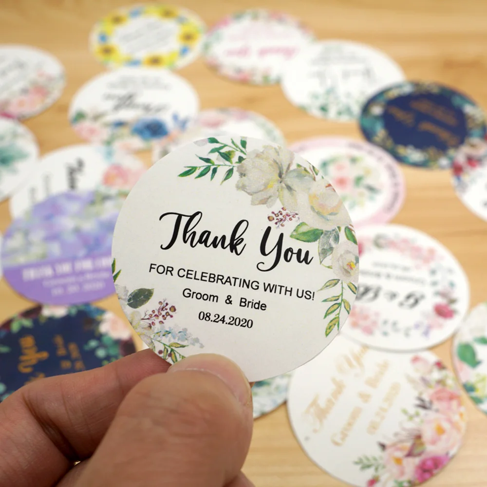 100 шт. 5 см2 дюйма индивидуальная Свадебная наклейка с круглым именем логотипа Водонепроницаемая Персонализированная этикетка Конфеты сувениры бирки для подарочных коробок упаковка