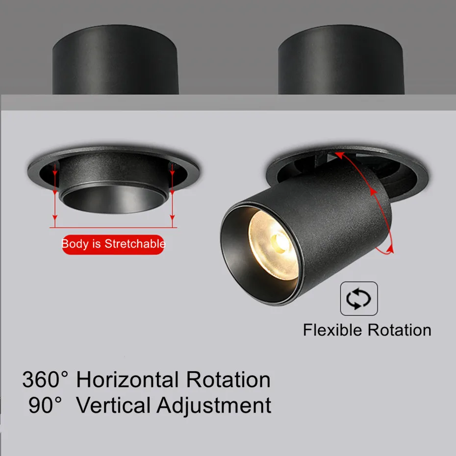 Телескопический Светодиодный точечный светильник 7 Вт 10 Вт, светодиодный встраиваемый потолочный светильник, растягивающийся светодиодный потолочный светильник для домашнего освещения