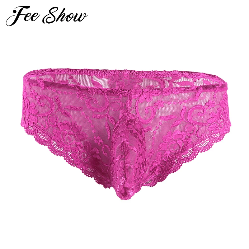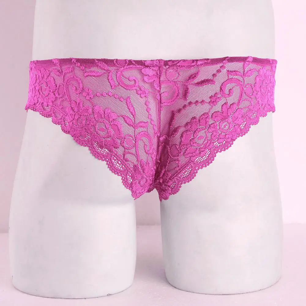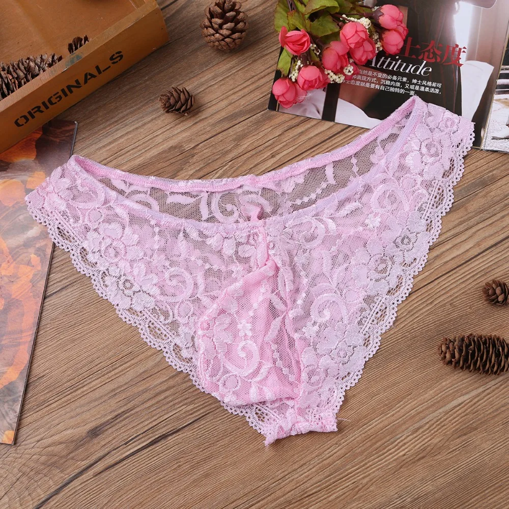 Мужское нижнее белье, кружевные прозрачные трусики с цветочным принтом для геев, Прозрачное Бикини трусики