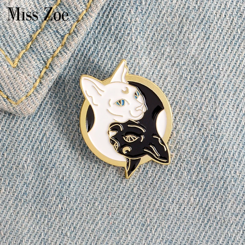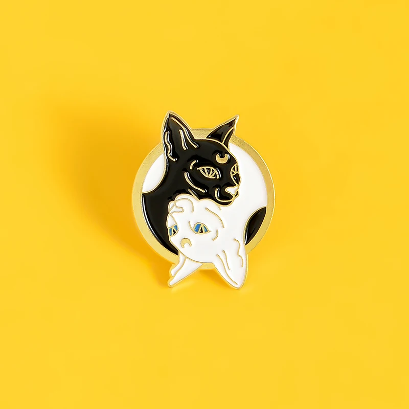 Эмалированная брошь Taichi с котами, на заказ, значок с ведьмой, кошкой Инь Янь, значок для сумки, лацкан, пряжка, животное, ювелирное изделие, подарок для друзей